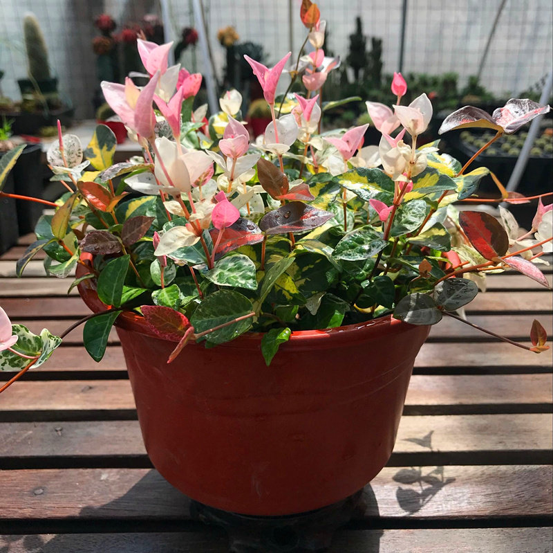 本款植物含盆为加仑盆根据植物大小配送合适尺寸的花盆!花叶络石是夹竹桃科、络石属常绿木质藤蔓植物。藤长一般在20-50厘米,内具乳汁;小枝、嫩叶柄及叶背面被有短绒毛,老枝叶无绒毛;叶对生,卵形,革质,在全光照下,椭圆形至卵状椭圆形或宽倒卵形,长2-6厘米,宽1-3厘米,锐尖至渐尖或钝,叶面有不规则白色或乳黄色斑点,老叶近绿色或淡绿色,新叶一般对为粉红色,第2-3对为纯白色,从新叶到老叶白色成分逐渐减少。因而,在新叶与老叶间有数对斑状花叶。茎有不明显皮孔,具气生根,匍匐生长,节节生根。