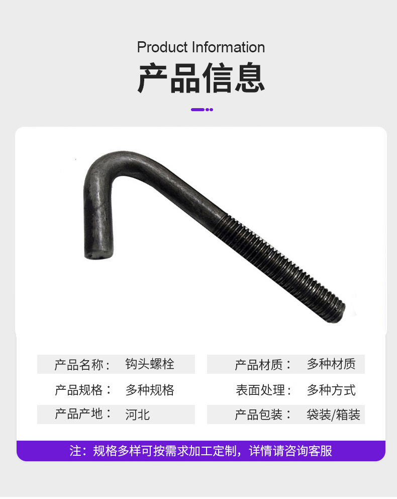 钩头螺丝勾头螺栓 高强度碳钢7字勾头螺栓单头带丝地脚螺栓现货,批发价,价格:0.56,厂家直销,钩头螺丝勾头螺栓 高强度碳钢7字勾头螺栓单头带丝地脚螺栓现货,免费拿样。
