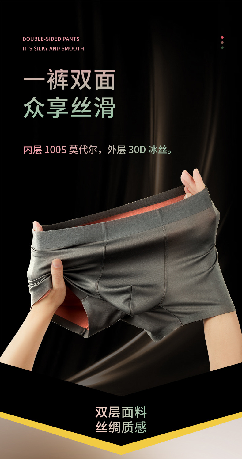 男士内裤冰丝100s双面兰精莫代尔内裤男桑蚕丝中腰无痕透气四角裤