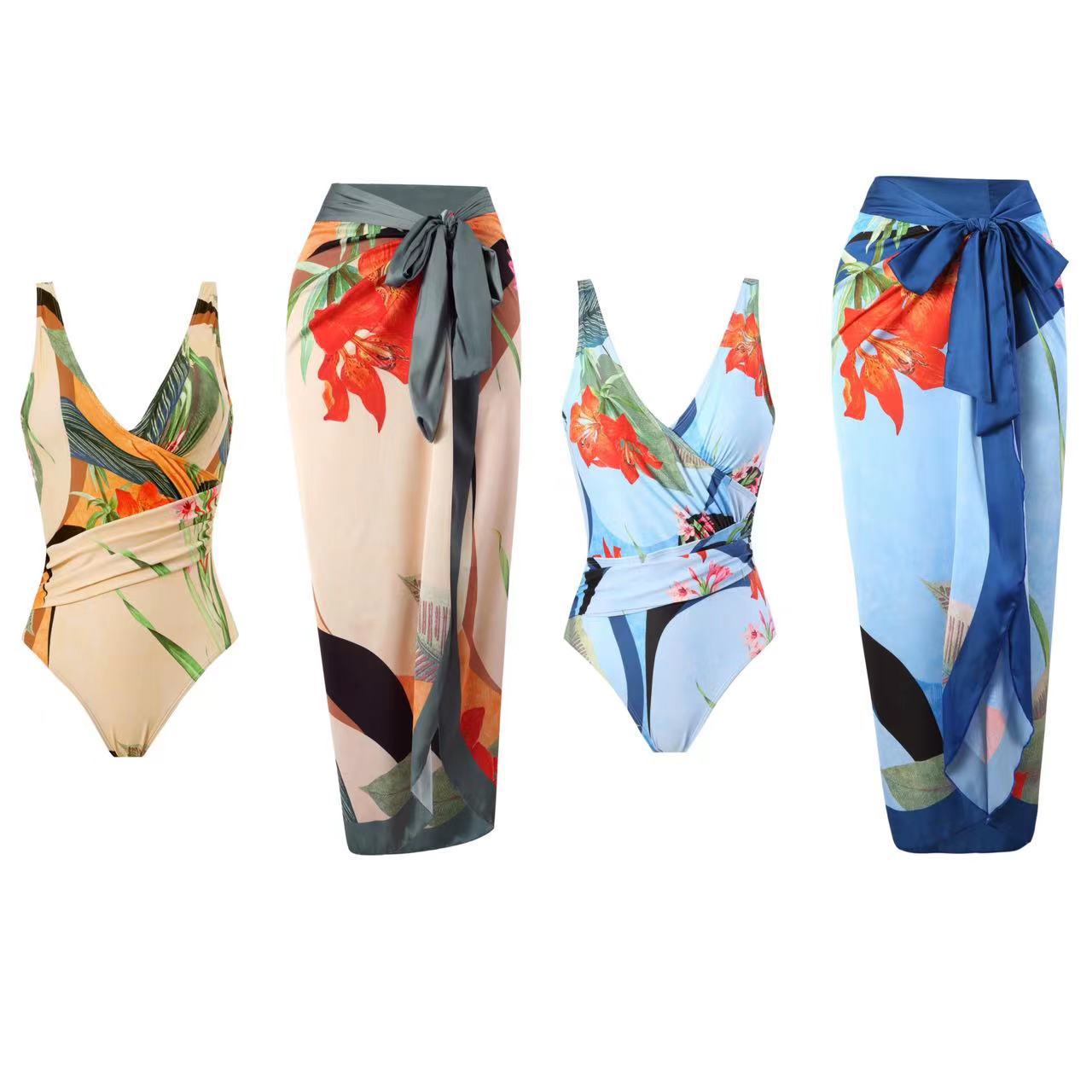 欧美连体保守遮肚显瘦度假沙滩温泉游泳衣法式复古连体交叉比基尼