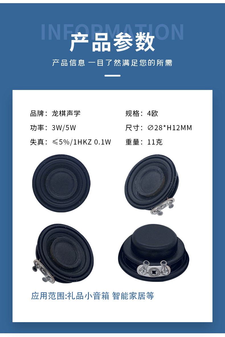 Φ28mm内磁4Ω2W最大4Ω3W、礼品小音箱智能家居等喇叭扬声器
