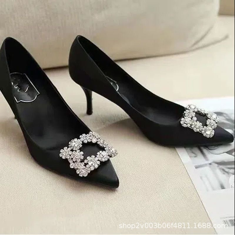 林心如同款RV水钻方扣高跟鞋女细跟尖头平底单鞋绸缎红色婚鞋浅口,批发价,价格:105,厂家直销,林心如同款RV水钻方扣高跟鞋女细跟尖头平底单鞋绸缎红色婚鞋浅口,免费拿样。