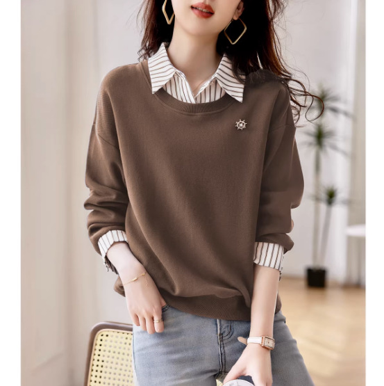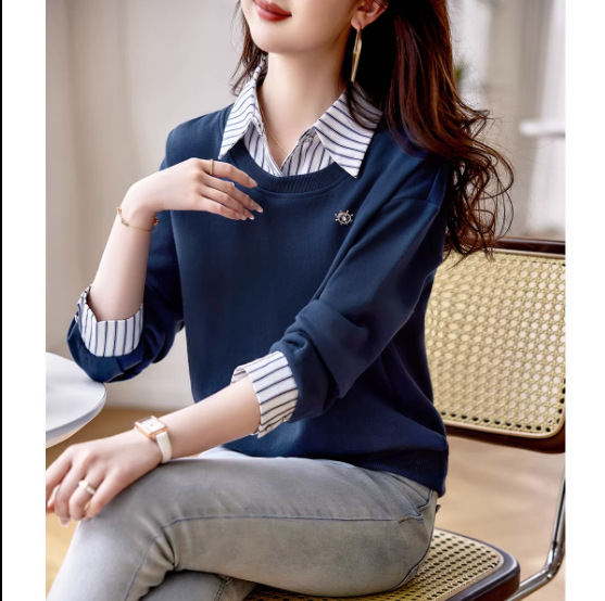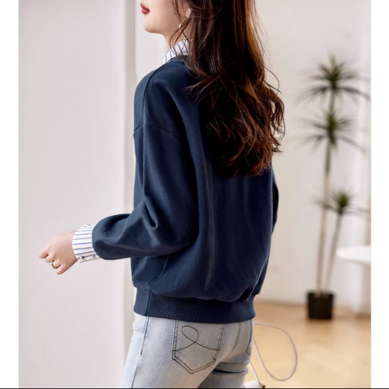 舒适轻休闲卫衣2024秋韩版新款时尚设计拼接条纹百搭显瘦女士上衣,批发价,价格:46.8,厂家直销,舒适轻休闲卫衣2024秋韩版新款时尚设计拼接条纹百搭显瘦女士上衣,免费拿样。