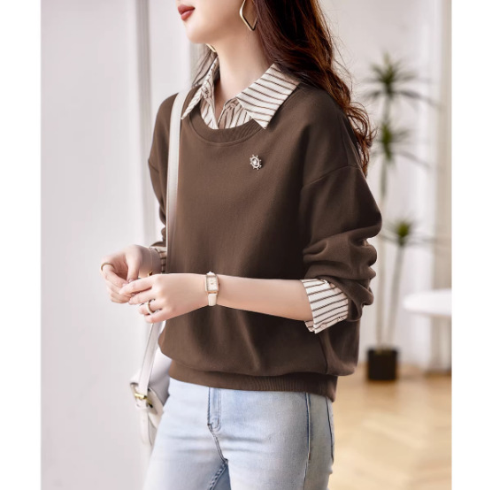 舒适轻休闲卫衣2024秋韩版新款时尚设计拼接条纹百搭显瘦女士上衣
