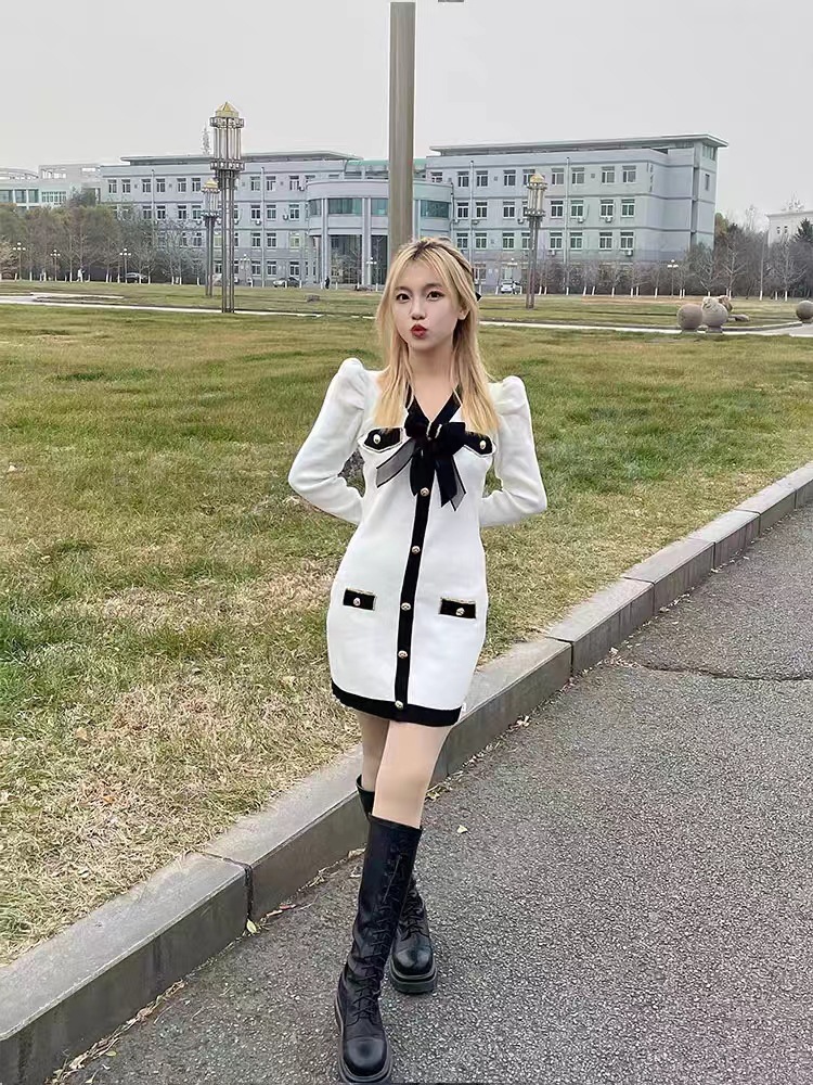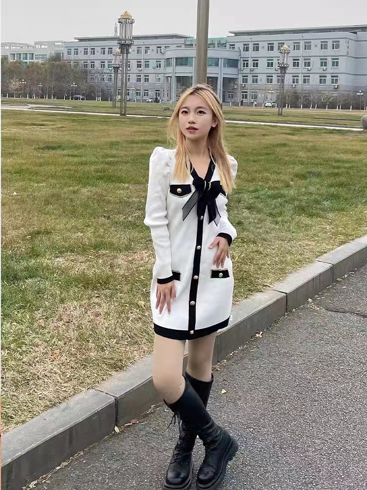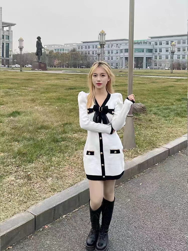 小香风秋冬季蝴蝶结V领单排扣修身通勤针织连衣裙名媛口袋拼色,批发价,价格:148,厂家直销,小香风秋冬季蝴蝶结V领单排扣修身通勤针织连衣裙名媛口袋拼色,免费拿样。
