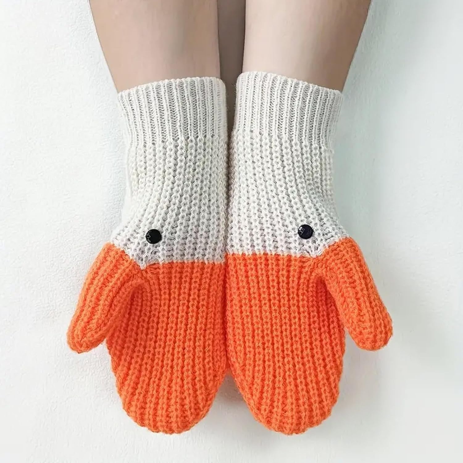 跨境新品男女通用秋冬防寒保暖立体天鹅全指手套针织毛线连指骑行