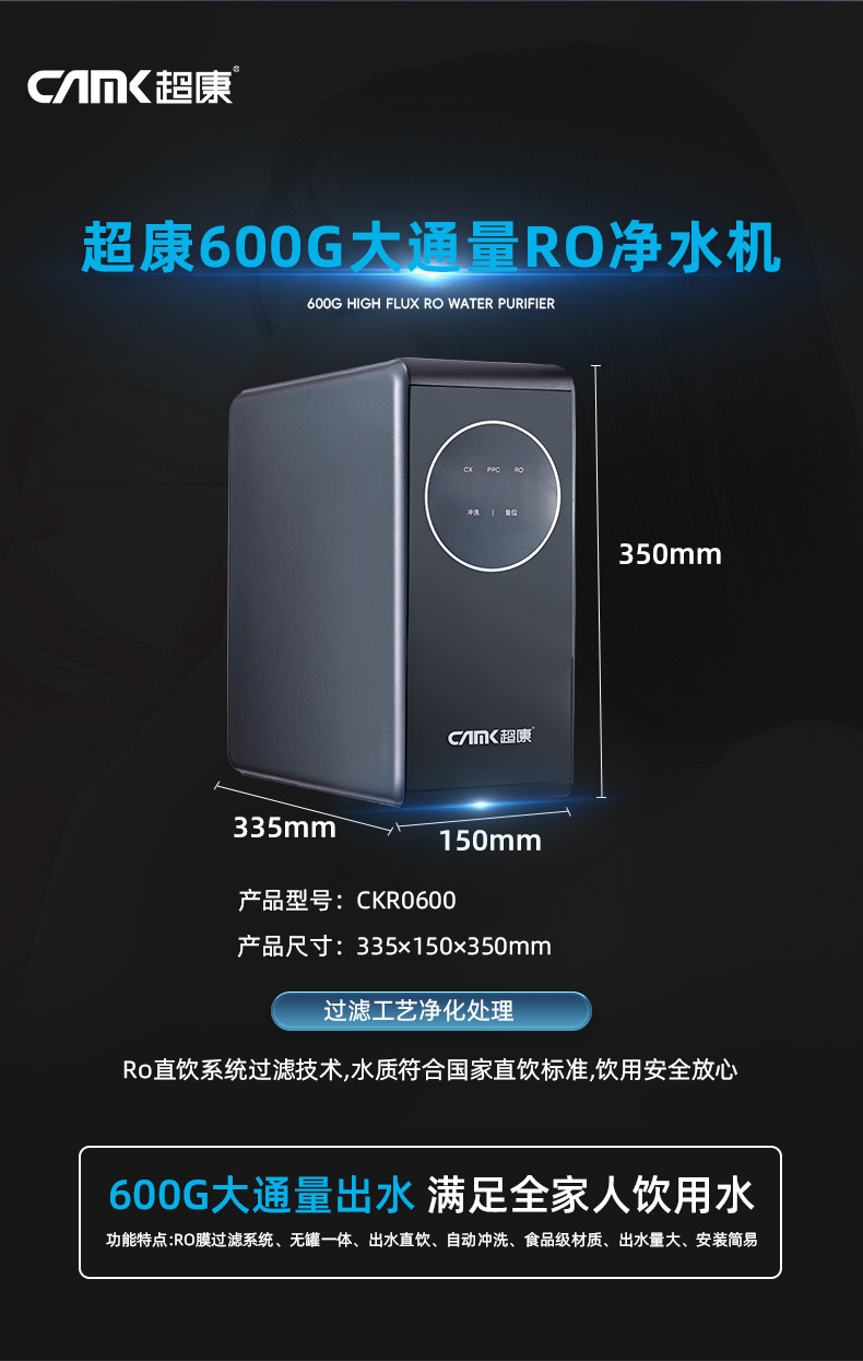 定制600G大流量纯水机 家用净水器 卡接式易安装反渗透ro直饮机