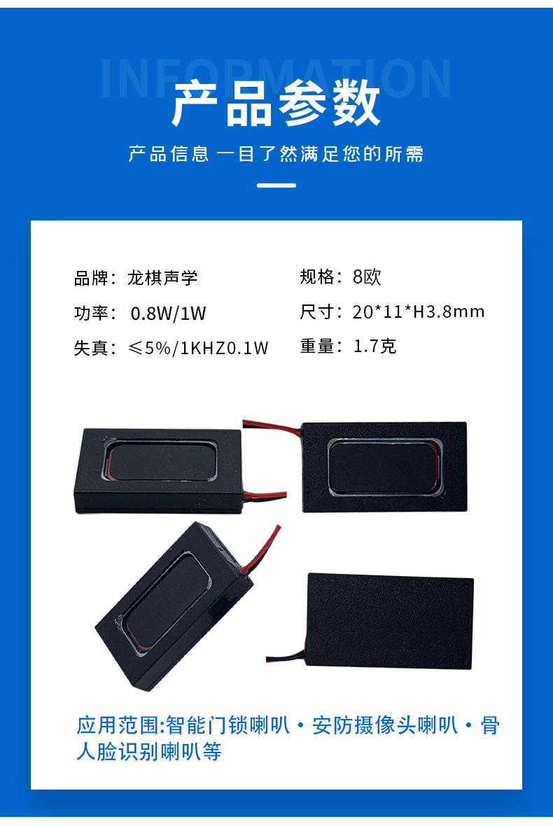 2011方形腔体装0916-8Ω1W喇叭平板智能门锁警示仪执法仪扬声器