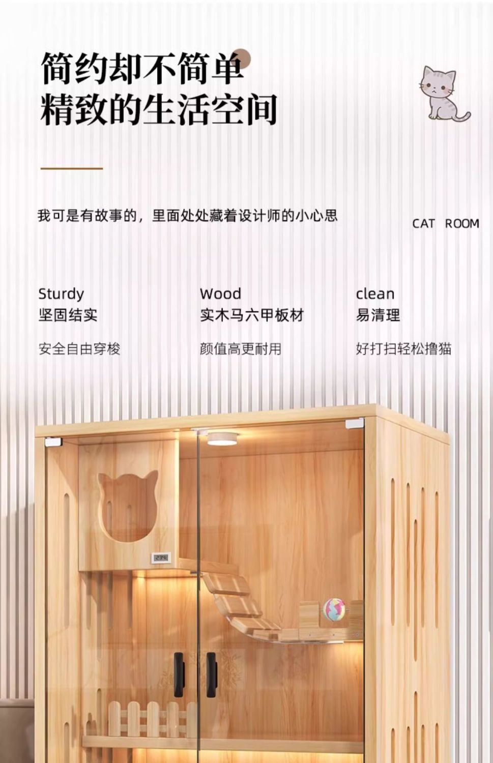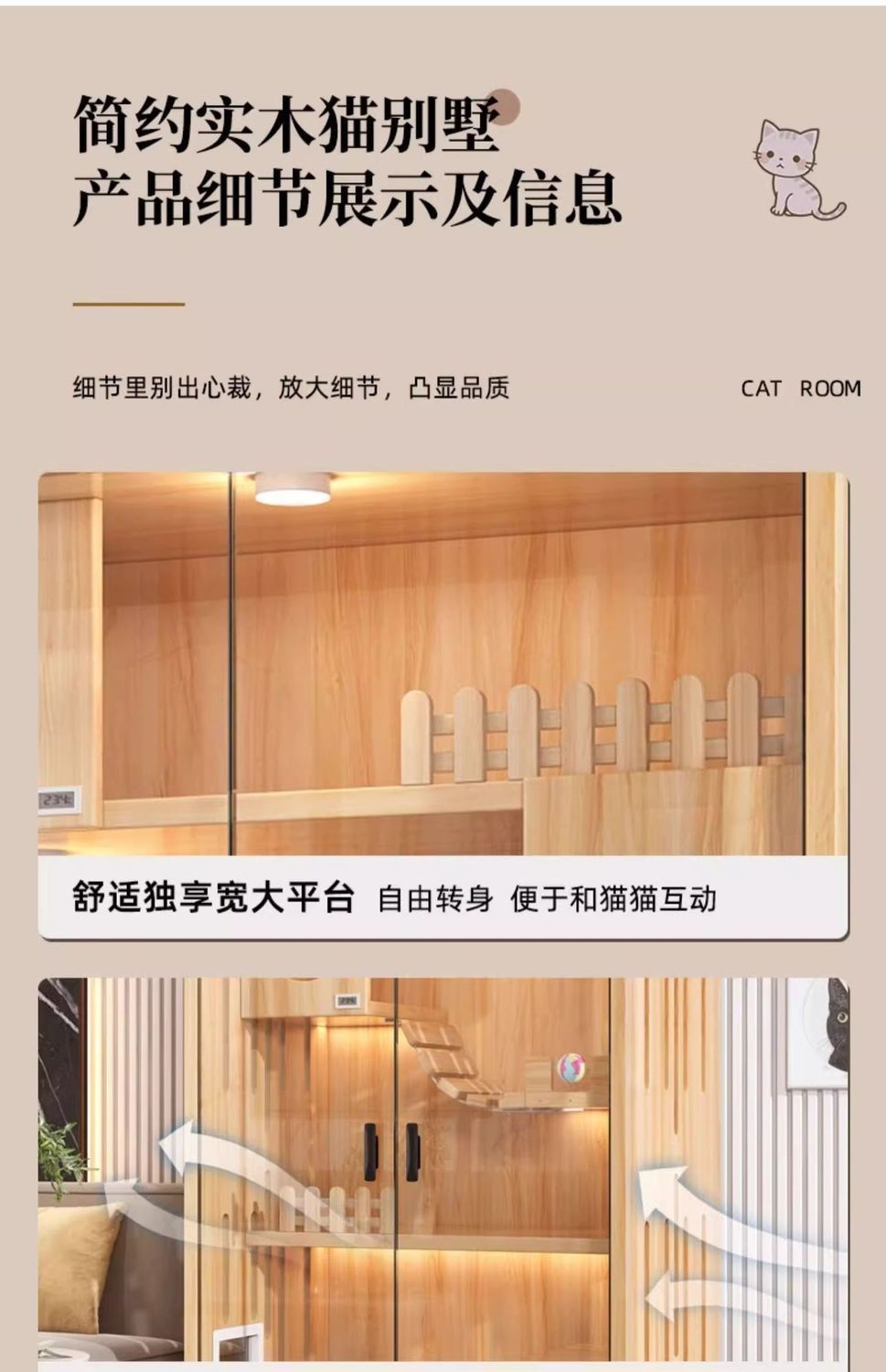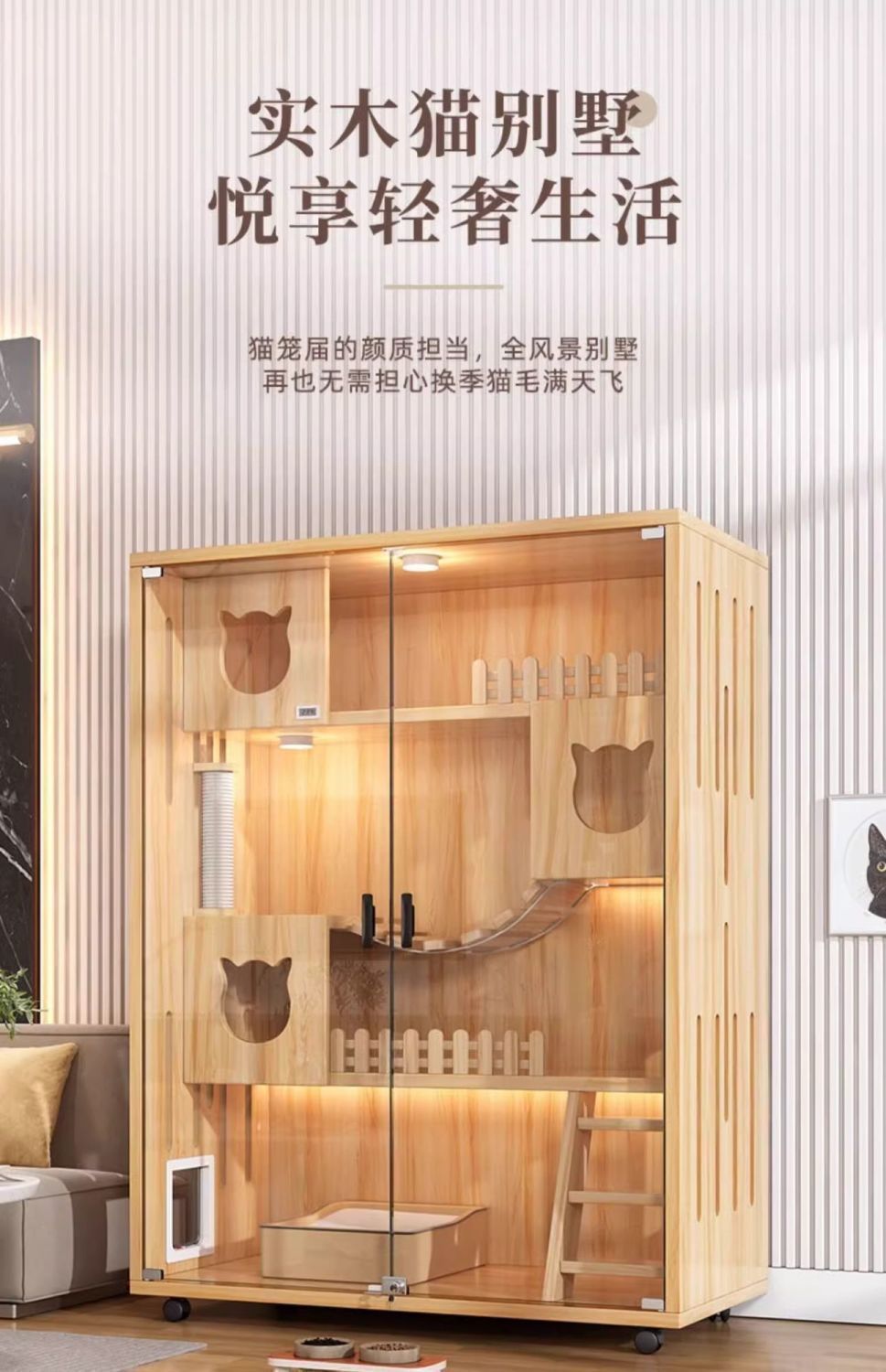 猫别墅宠物柜家用室内超大猫舍自由空间豪华猫咪房子实木猫柜猫笼