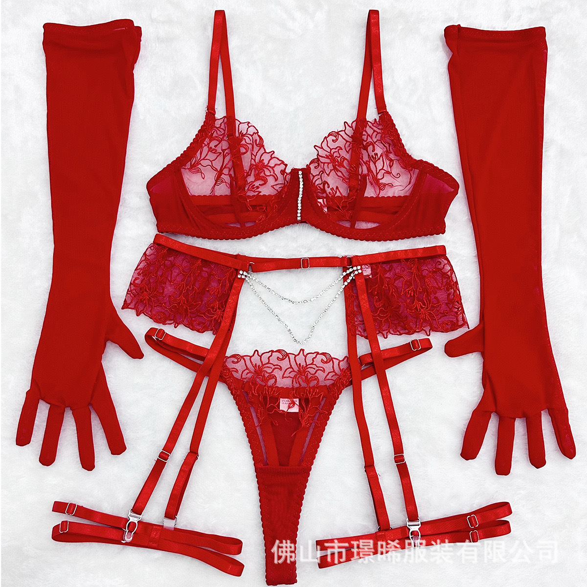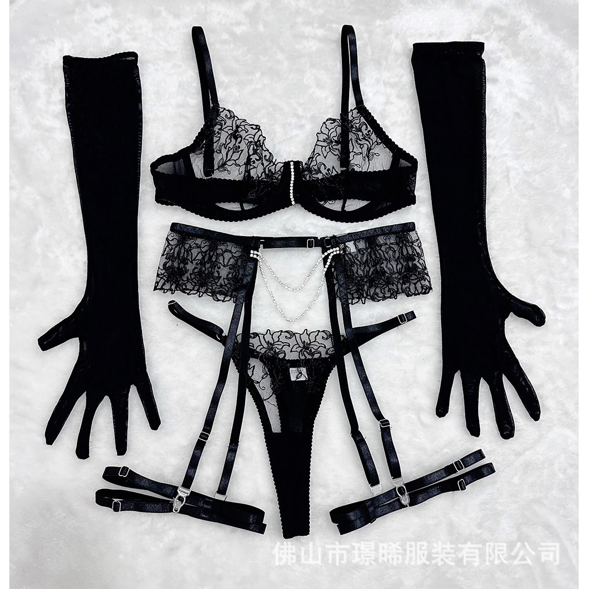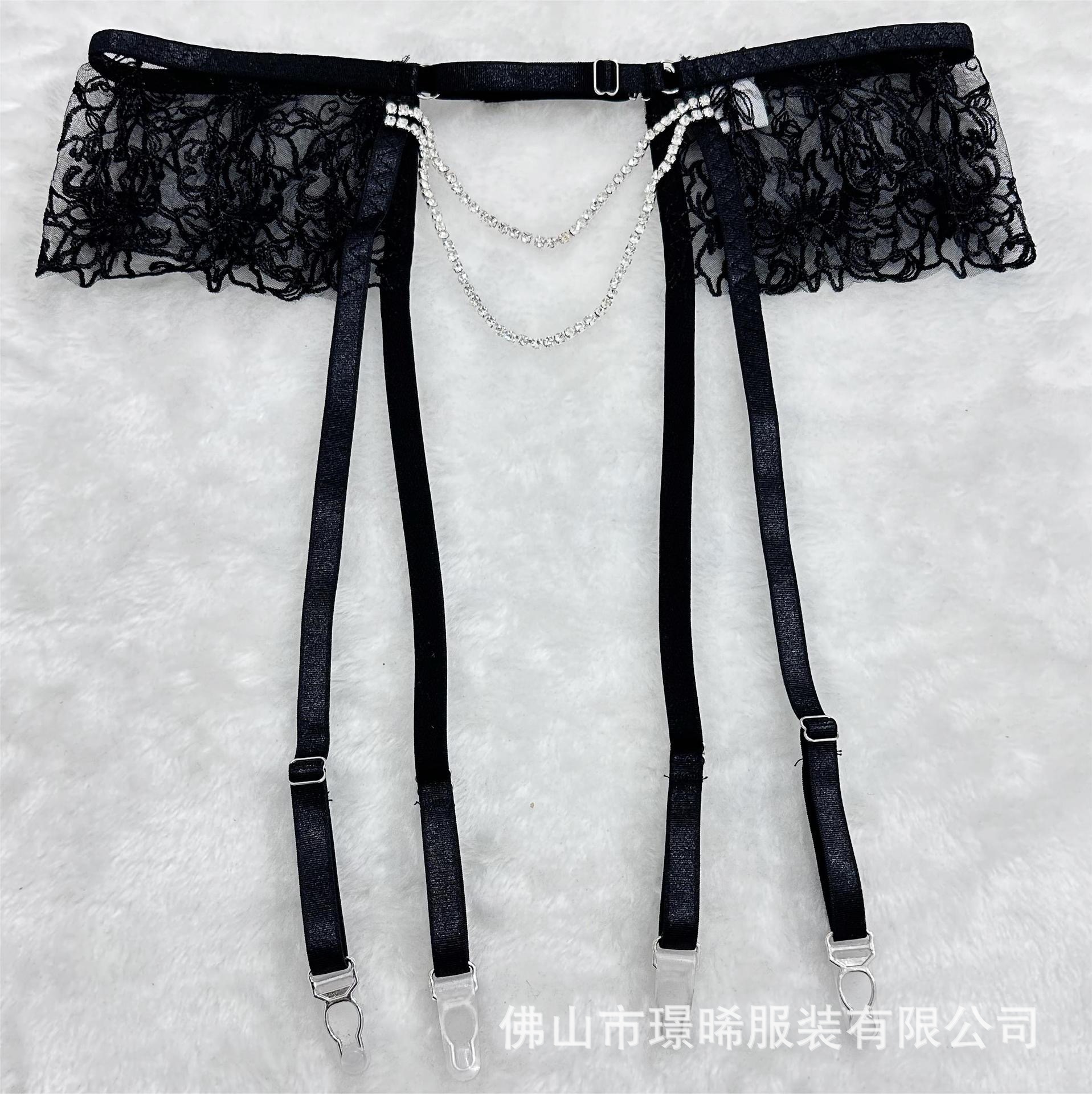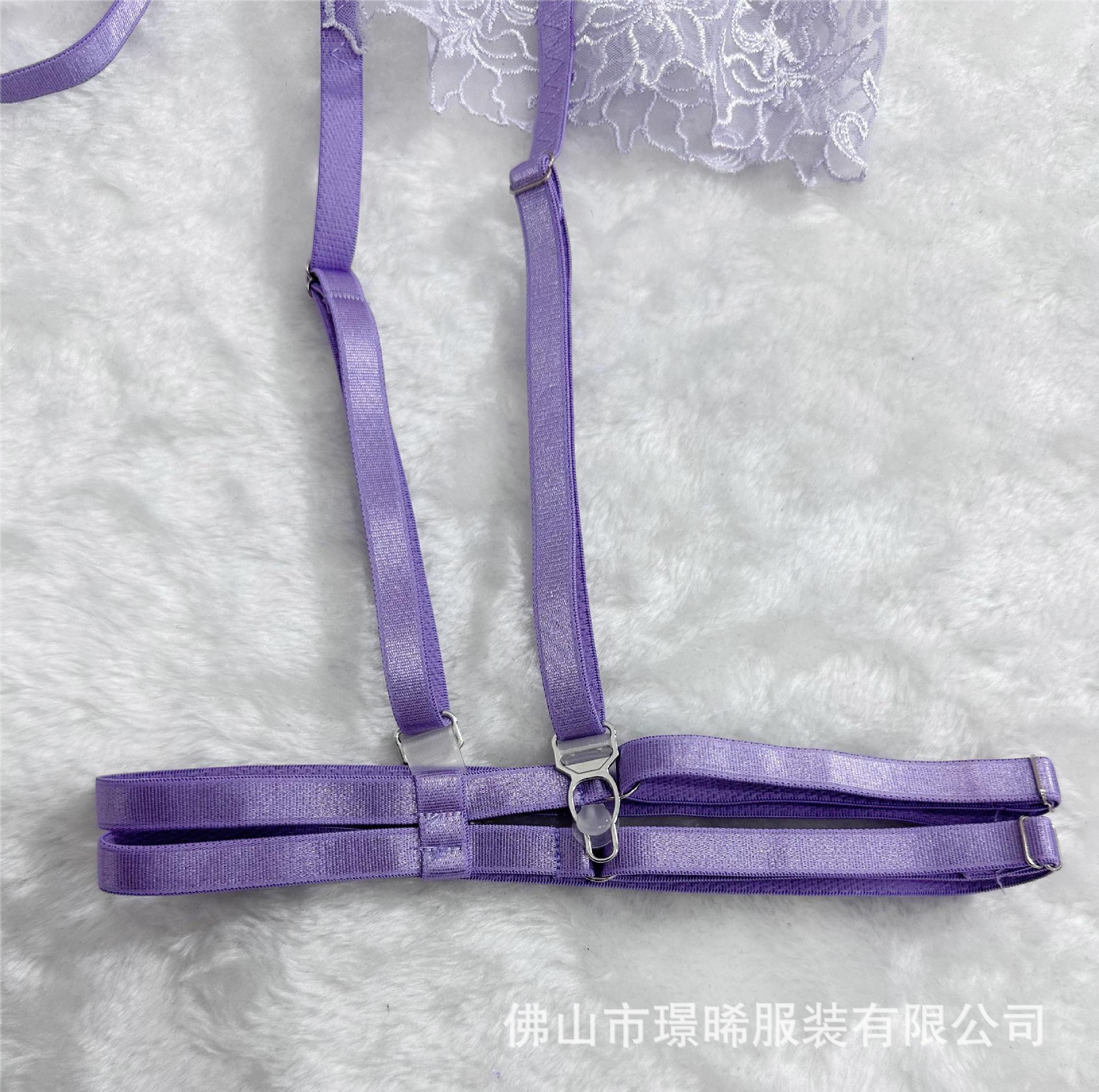 亚马逊欧美外贸时尚情趣内衣套装透视性感刺绣链条网纱聚拢文胸女