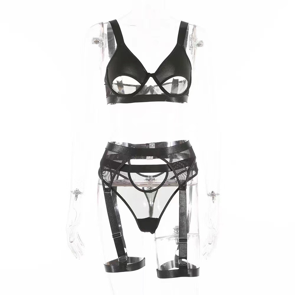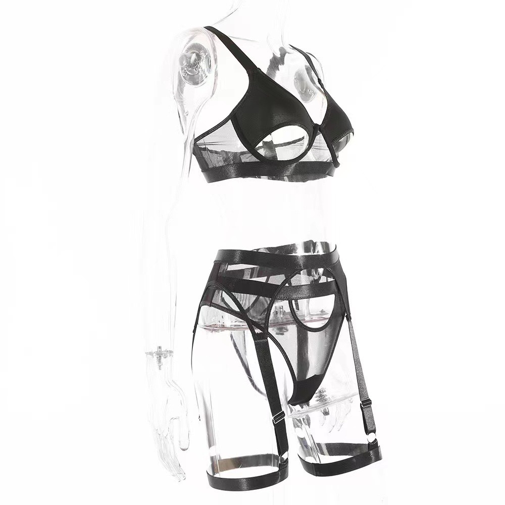 亚马逊速卖通热销款情趣蕾丝重工艺镂空露背情趣内衣套装女三件套