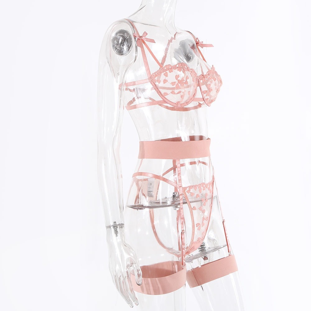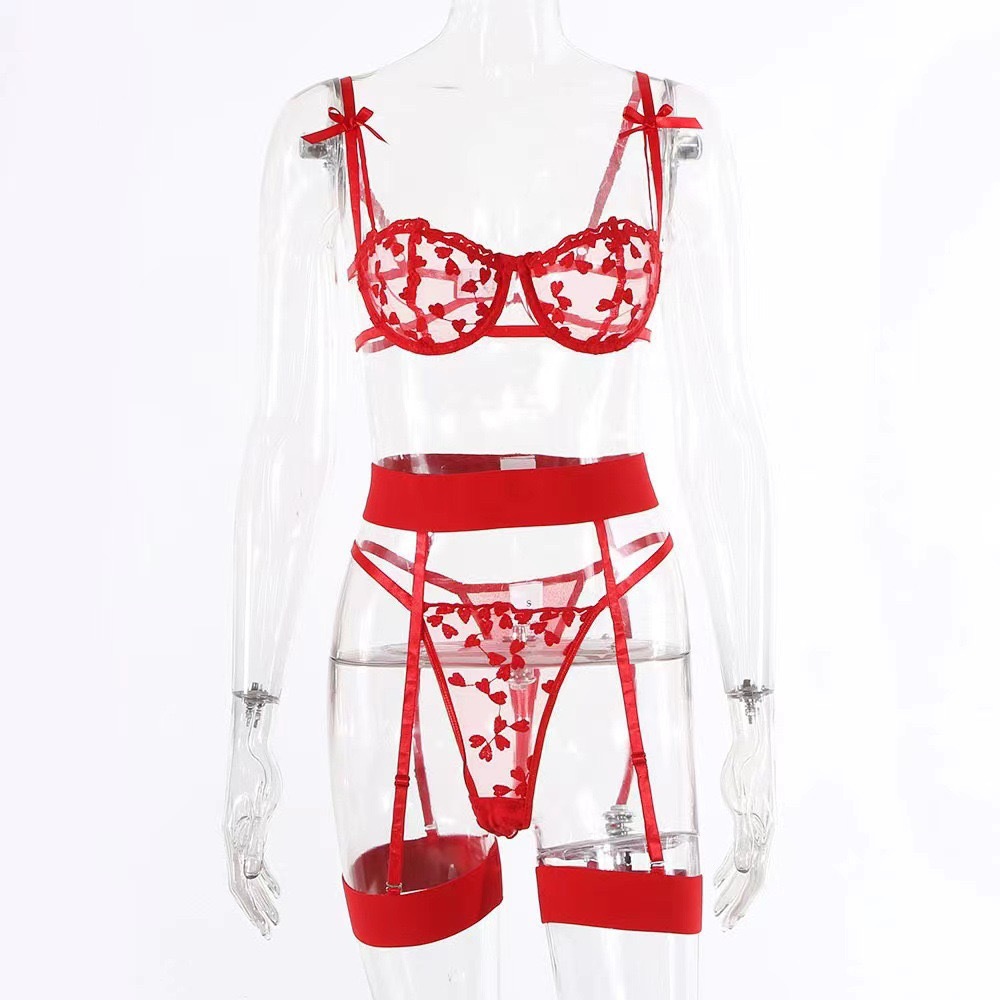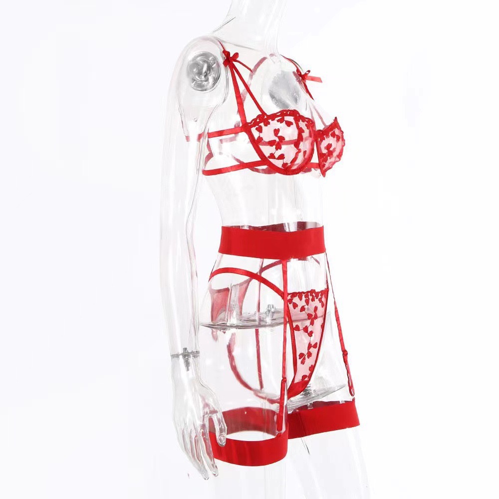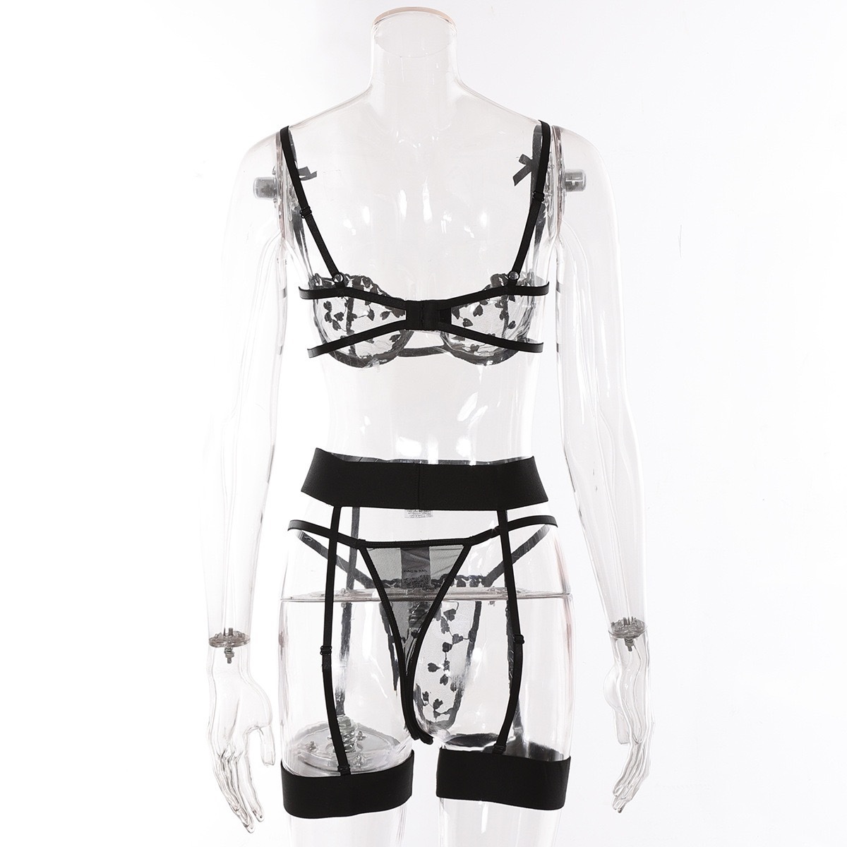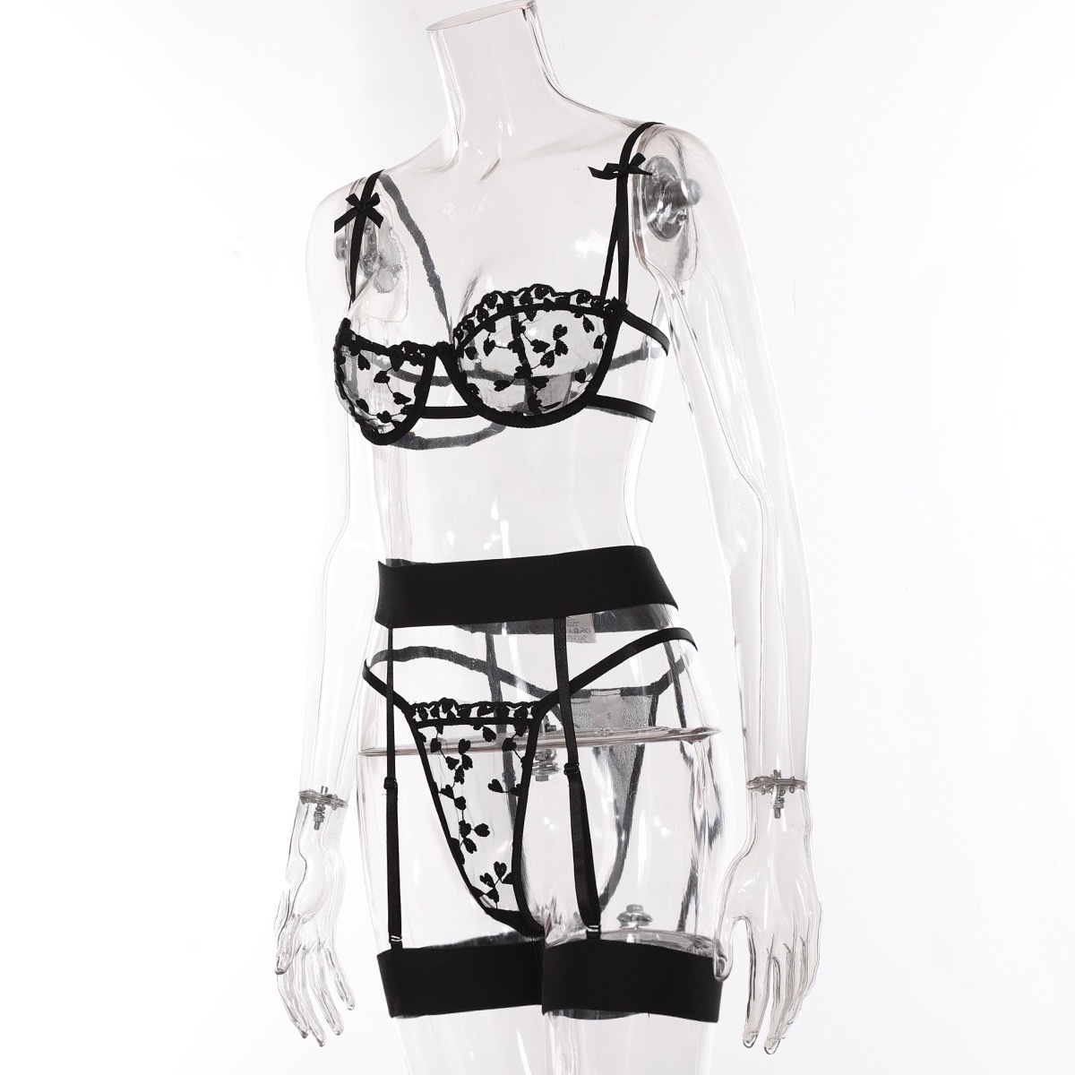 独立站跨境外贸热销货源欧美刺绣蕾丝可爱性感情趣内衣三件套现货