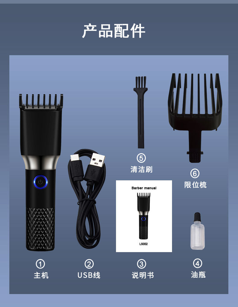 跨境新款USB款男士可调节电动理发器家用电推剪多功能电推子