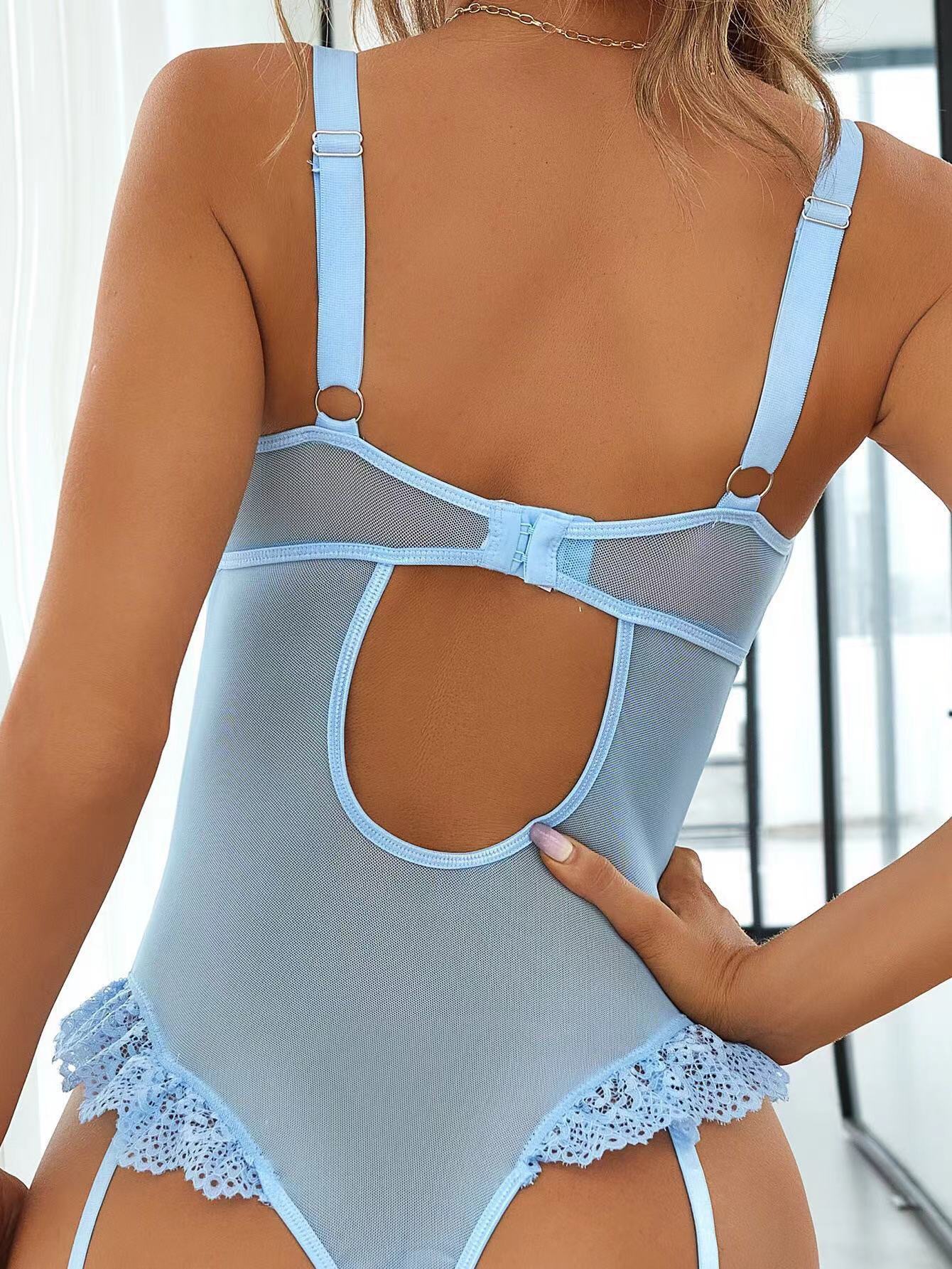 新款欧美女式情趣内衣跨境刺绣蕾丝花边露背三点式性感诱惑连体衣