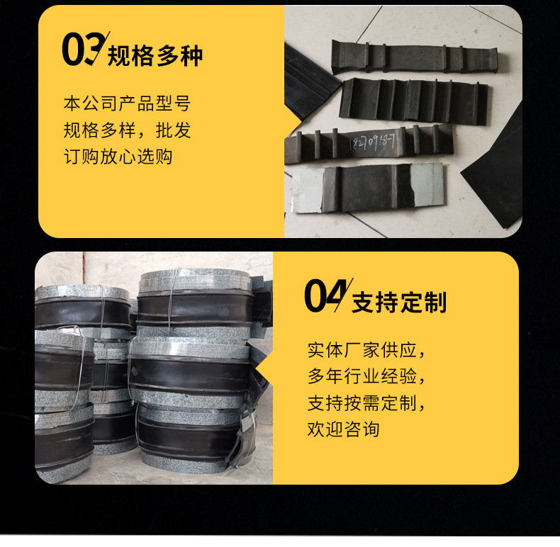 我公司专业生产各种规格:橡胶止水带,钢边橡胶止水带,遇水膨胀止水带,651橡胶止水带,钢板腻子止水带,中埋式止水带,外贴式止水带,可卸式止水带,可注浆止水带,施工缝止水带,沉降缝橡胶止水带,伸缩缝橡胶止水带等。