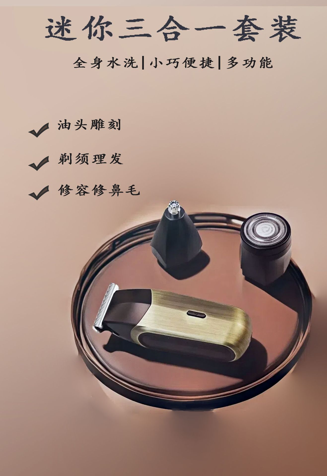 新款迷你便携式油头剪剃须刀理发器鼻毛修剪器三合一多功能套装,批发价,价格:32,厂家直销,新款迷你便携式油头剪剃须刀理发器鼻毛修剪器三合一多功能套装,免费拿样。