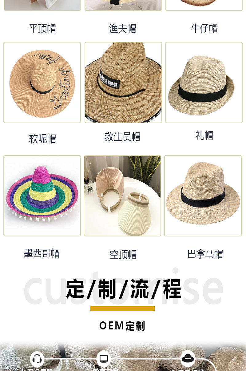 席草救生员帽定制加工草帽夏季农村农民下地遮阳帽防晒帽高顶大檐