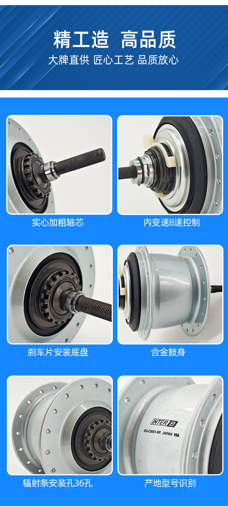 天轴车料自行车单车配件现货批发SHIMANO内八速花鼓36孔碟刹版