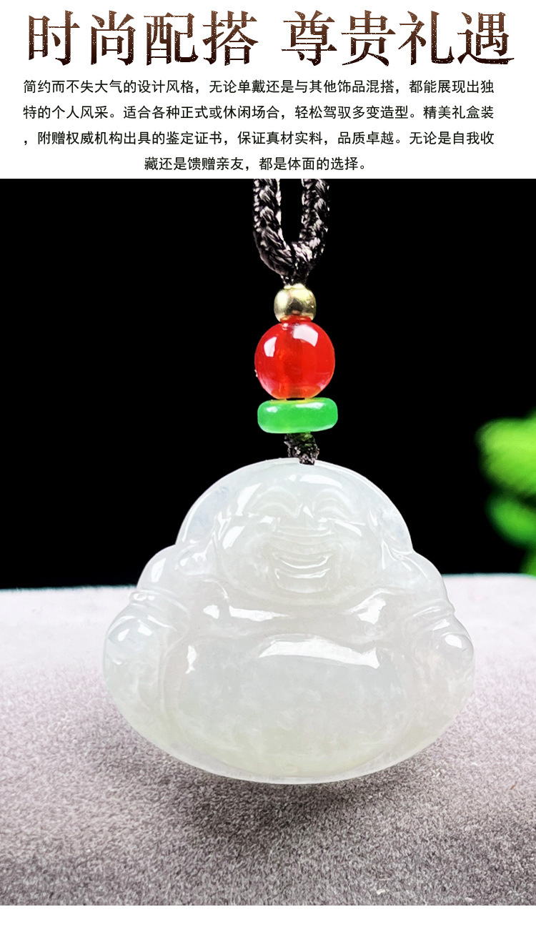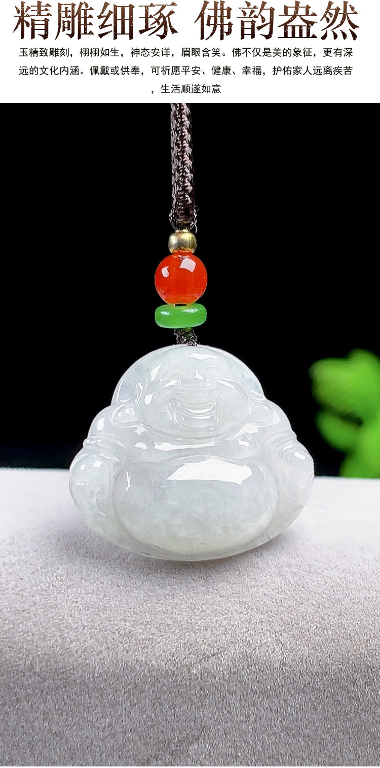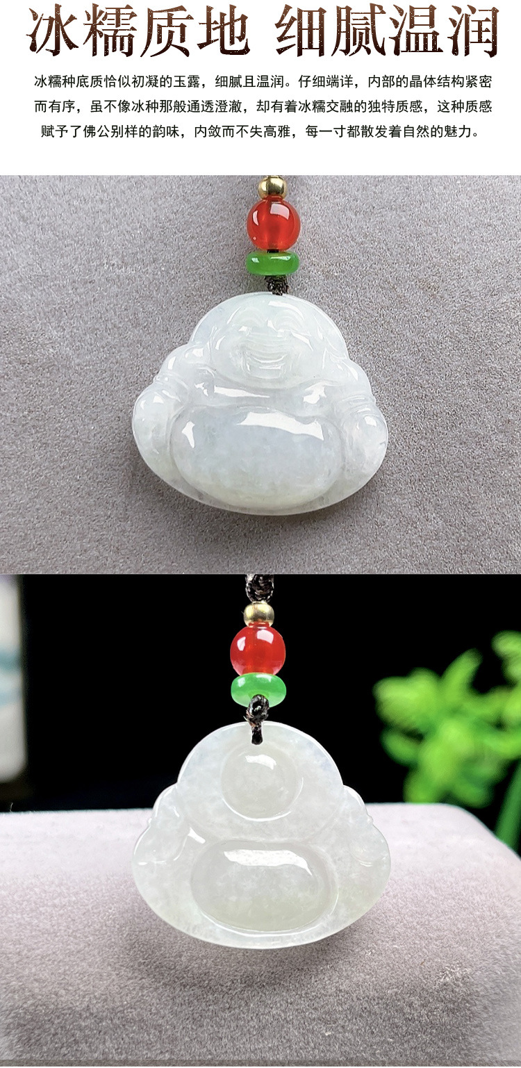 缅甸料冰底润白佛公项坠弥勒佛挂件天然A货翡翠吊坠四会珠宝批发