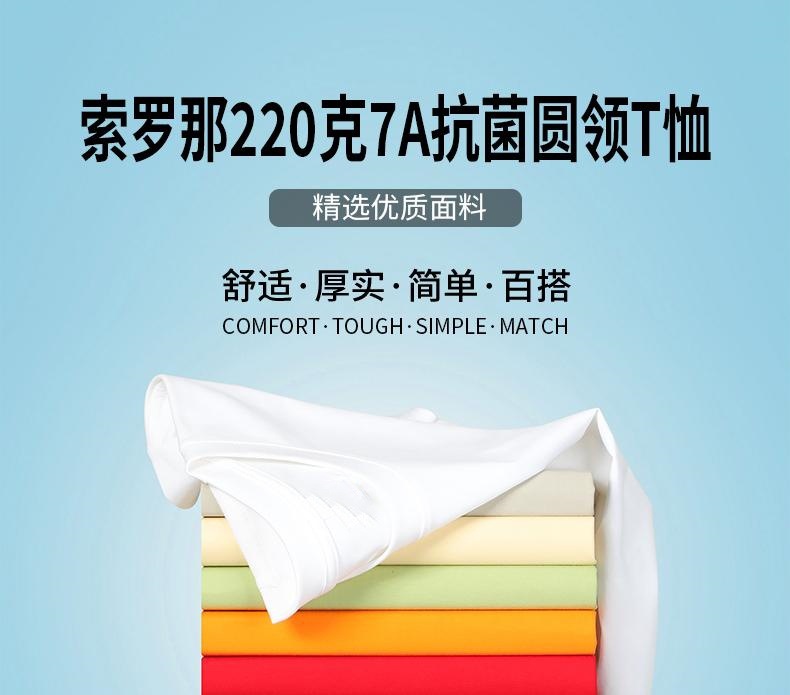 深圳夏季潮牌男士纯色索罗纳圆领短袖t恤透气半袖衫7A抗菌220g