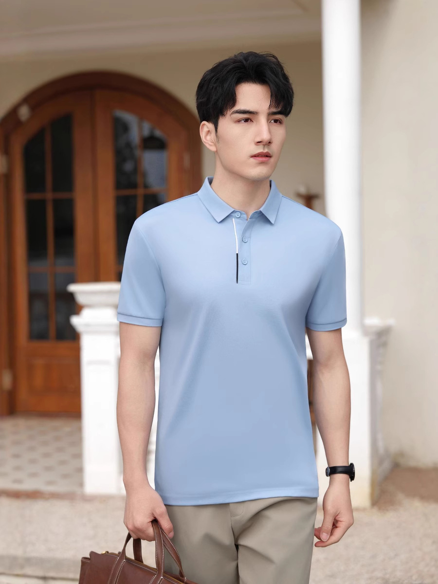 160克丝光液氨棉二级领撞色翻领工装T恤文化广告polo衫定购批发