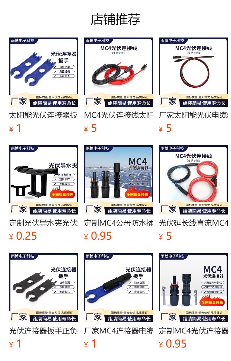 推荐理由:定制MC4公母防水插头太阳能组件连接线头发电组件MC4光伏连接头