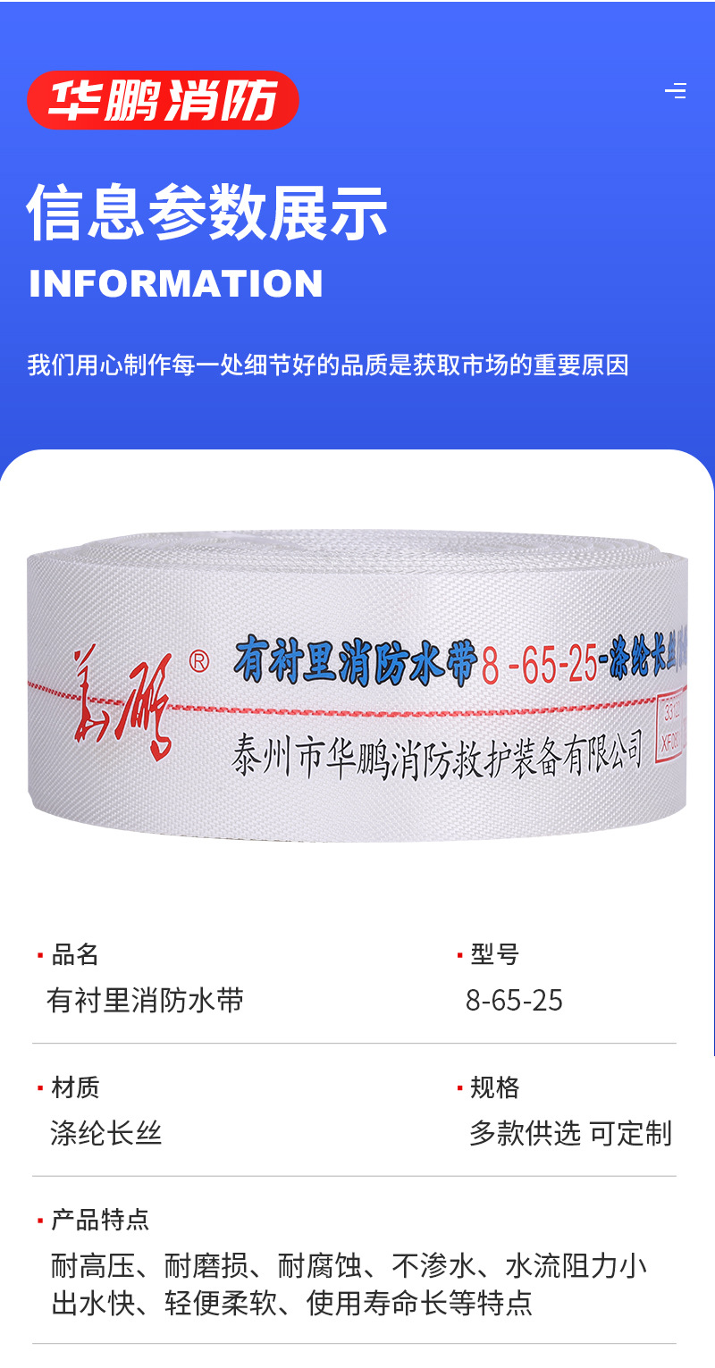 消防水带8-65-25m涤纶长丝编织合成橡胶有衬里厂家批发包检水带,批发价,价格:60,厂家直销,消防水带8-65-25m涤纶长丝编织合成橡胶有衬里厂家批发包检水带,免费拿样。