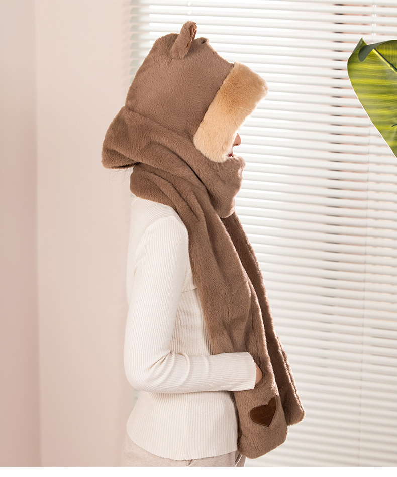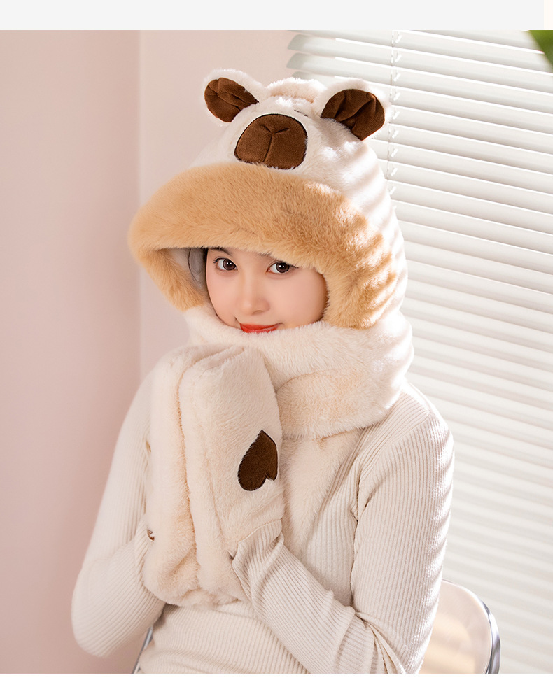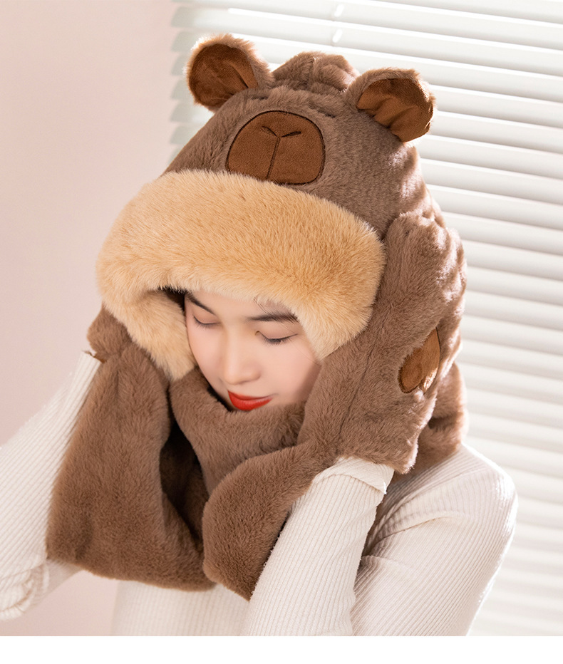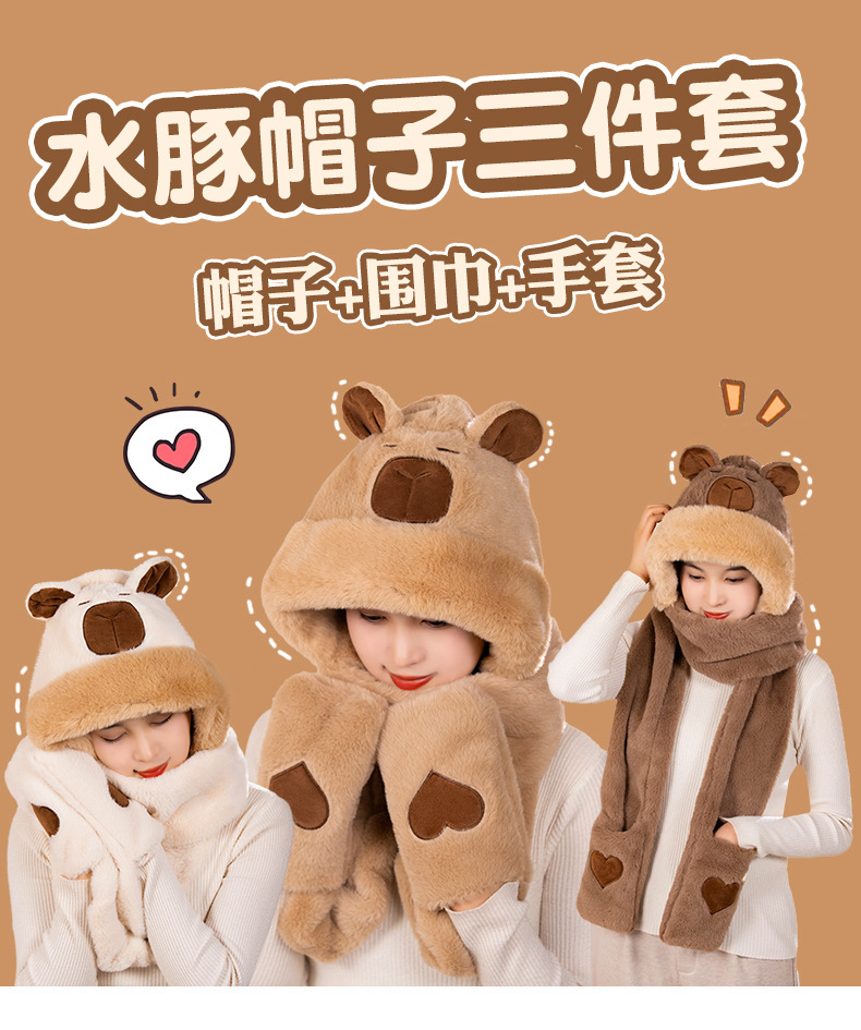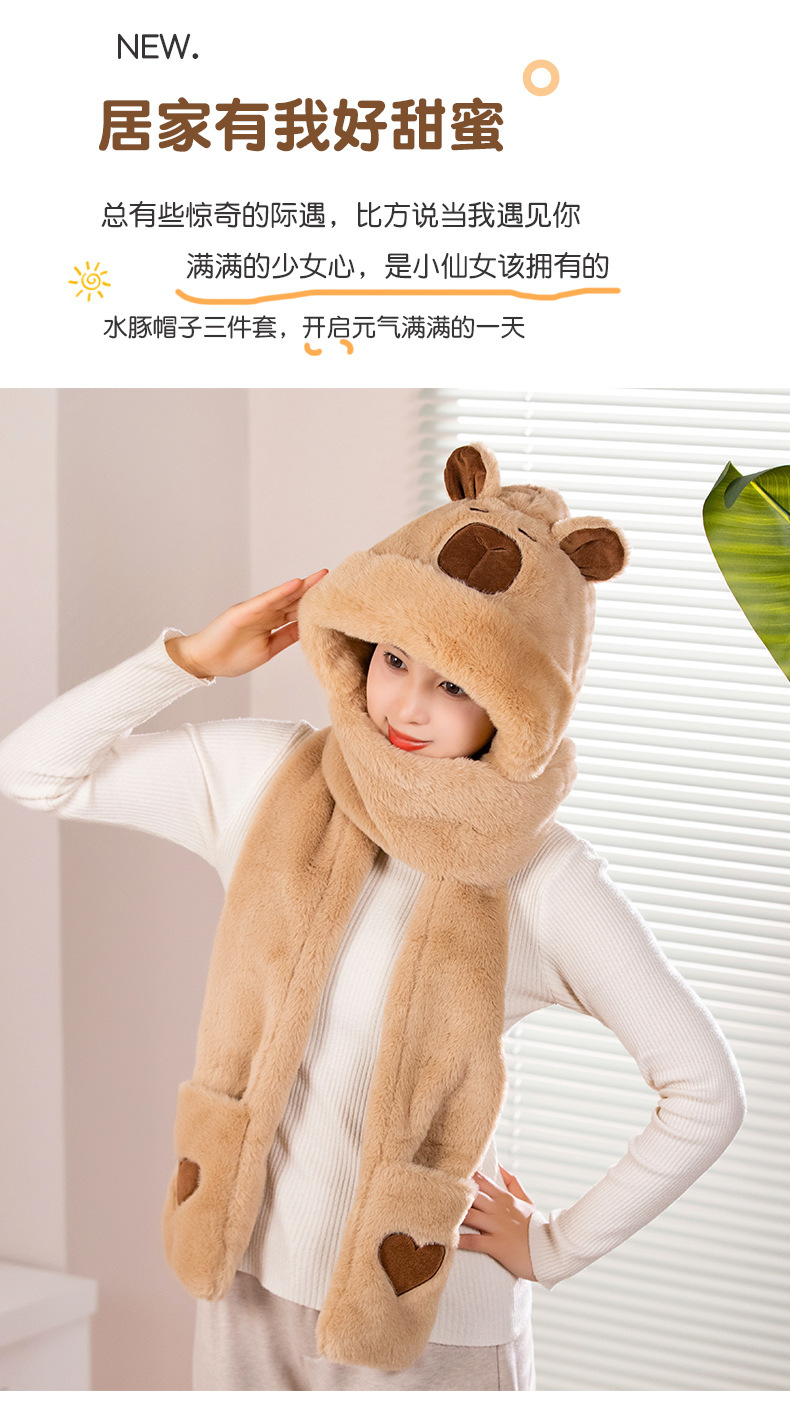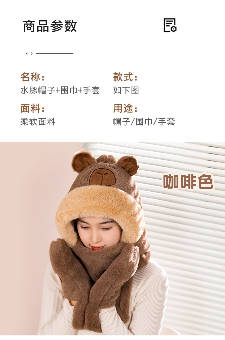 可爱毛绒帽子冬季亲子保暖加厚加绒帽子围巾手套一体三件套防寒帽