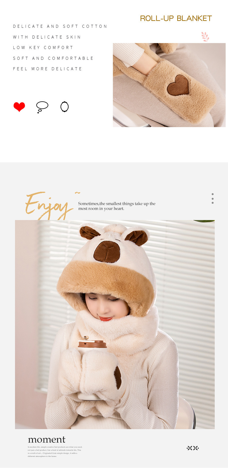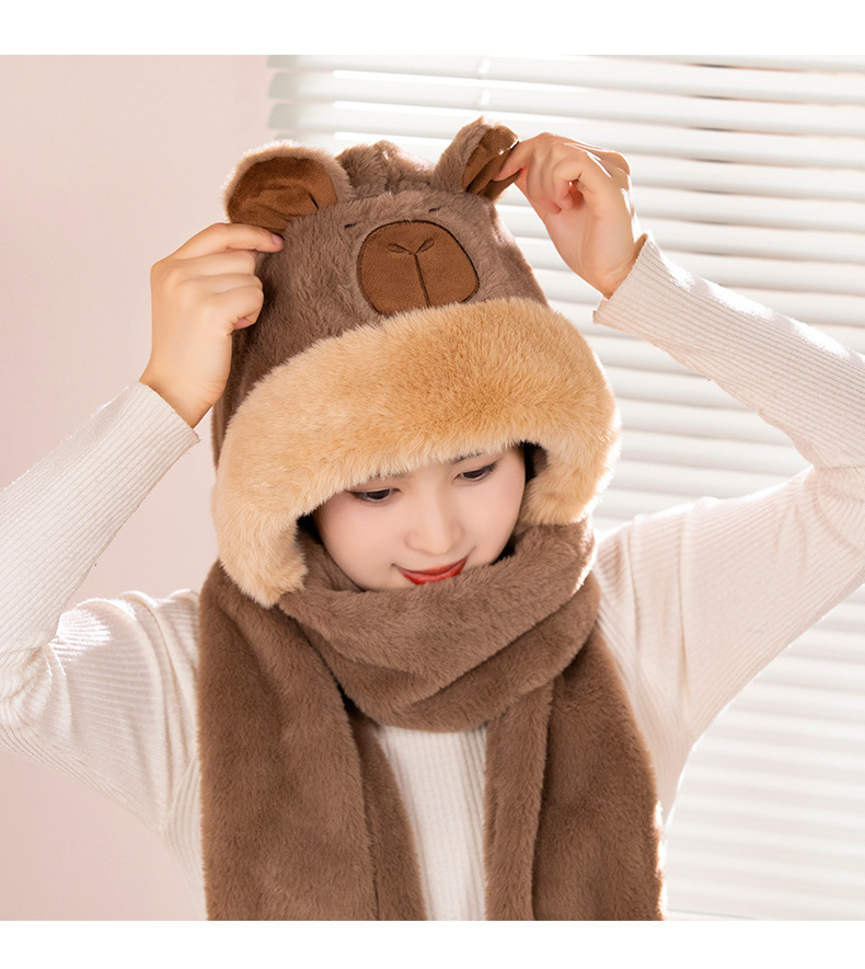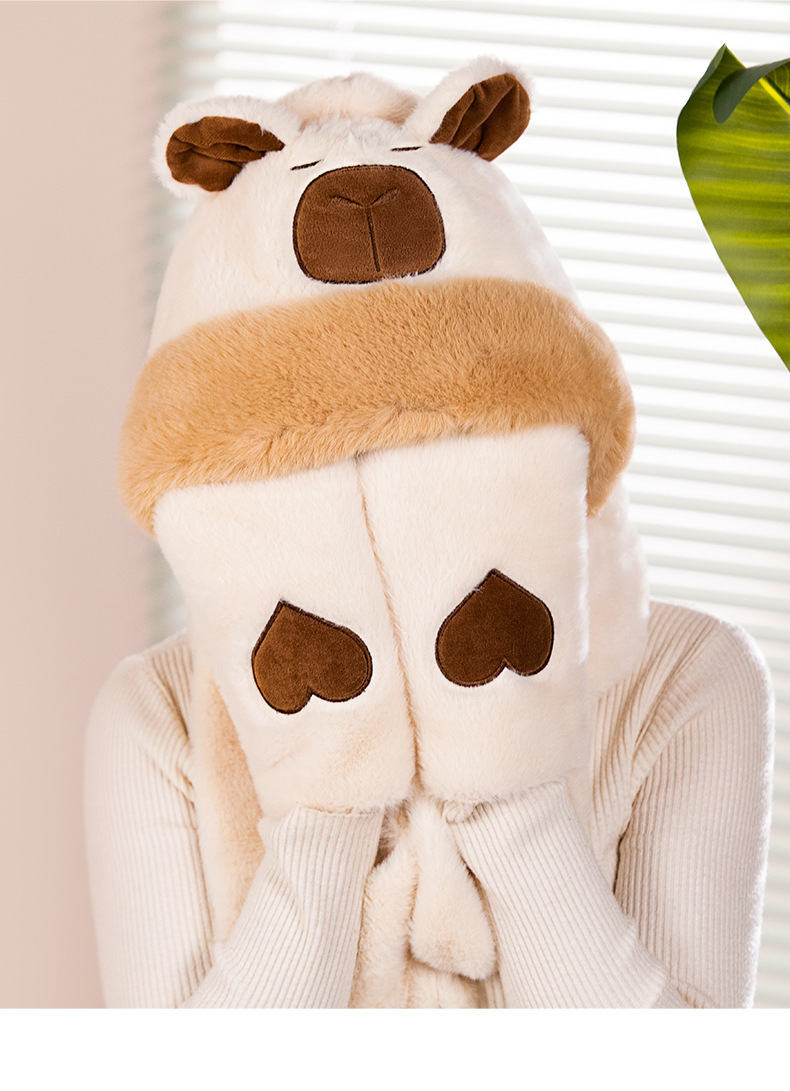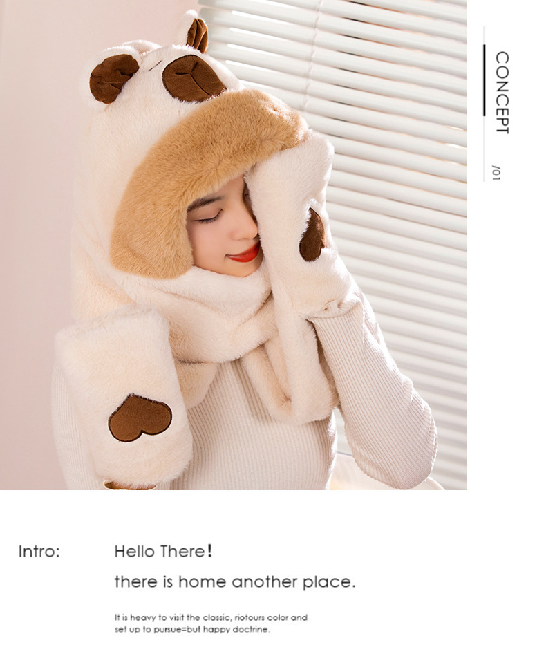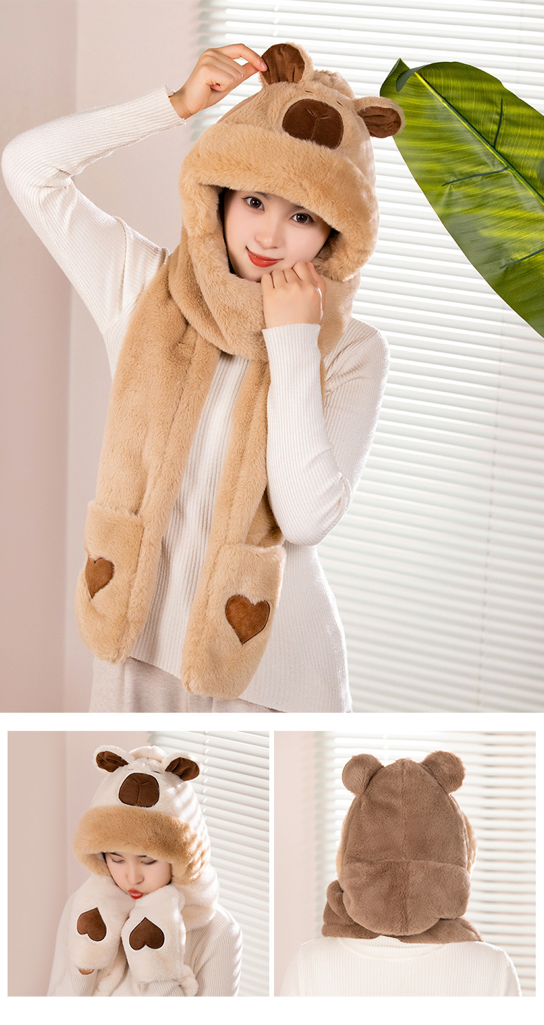 可爱毛绒帽子冬季亲子保暖加厚加绒帽子围巾手套一体三件套防寒帽