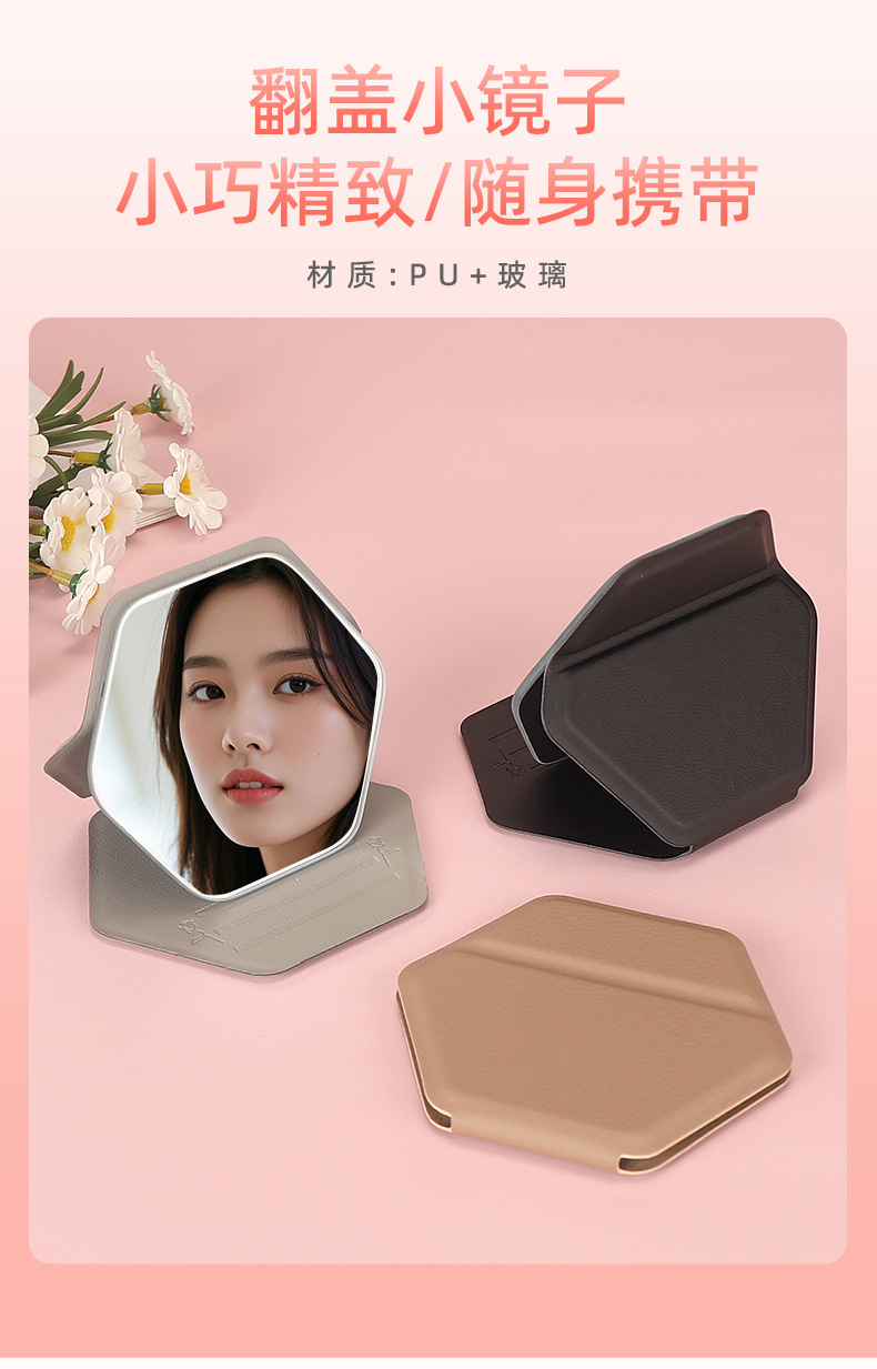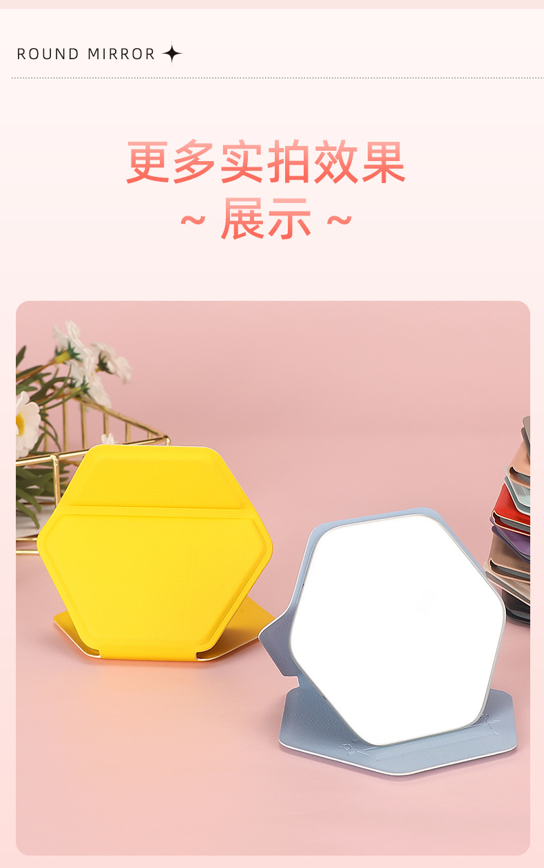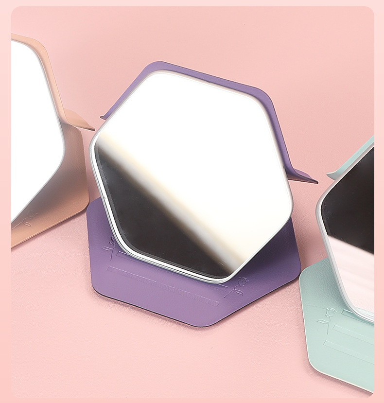 跨境 六角镜便携镜子简约迷你化妆镜桌面女式折叠随身补妆小镜子