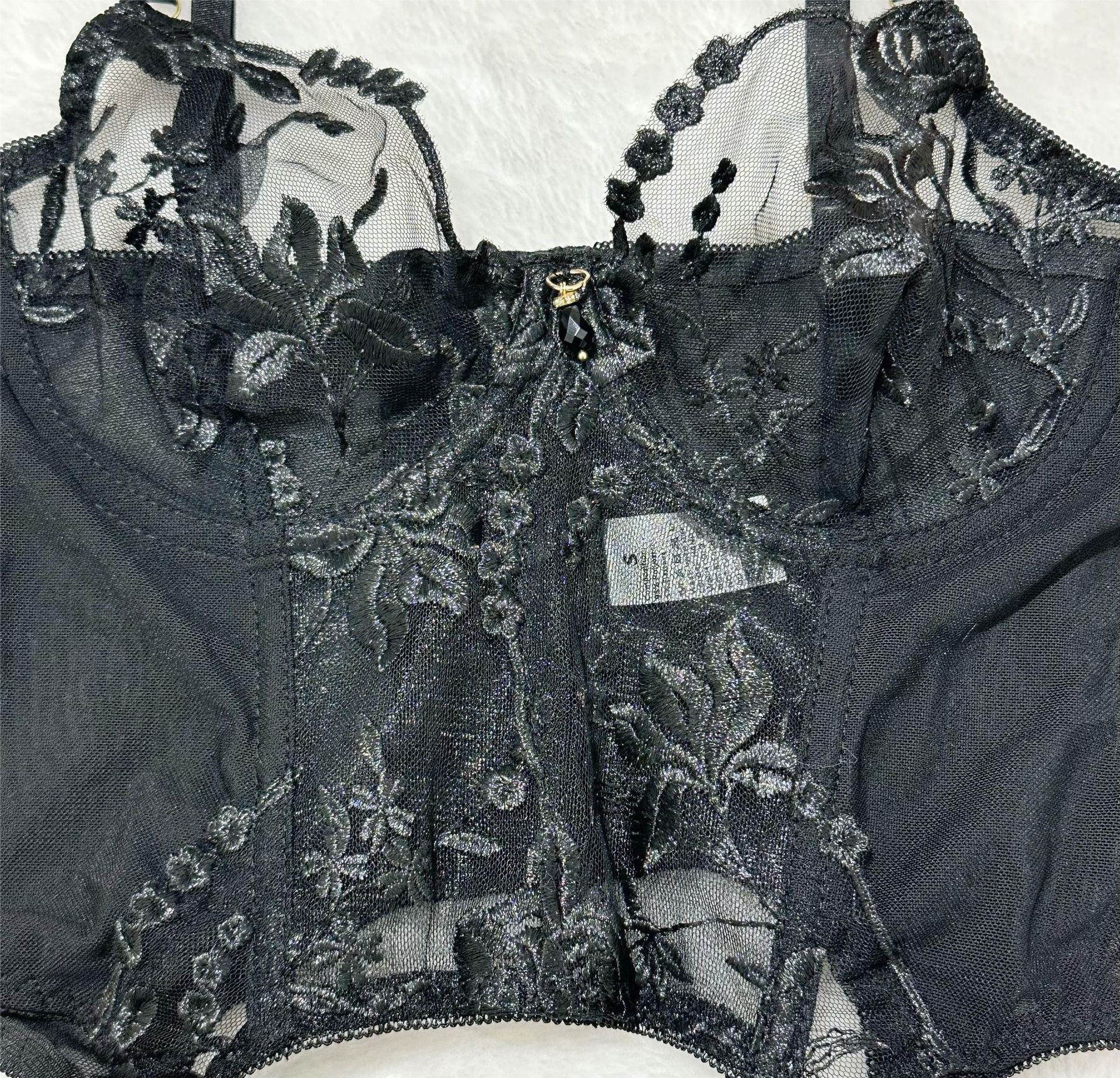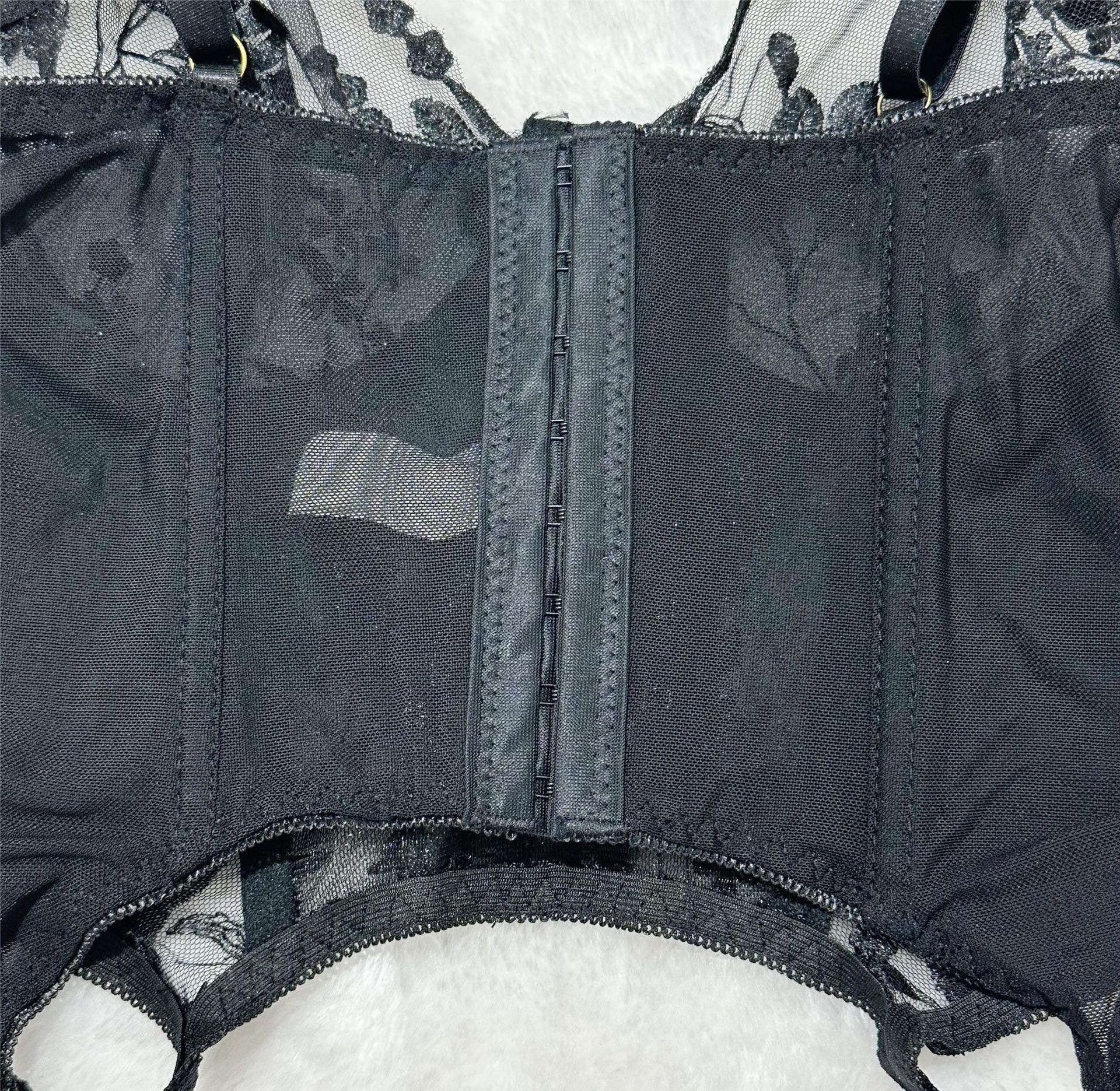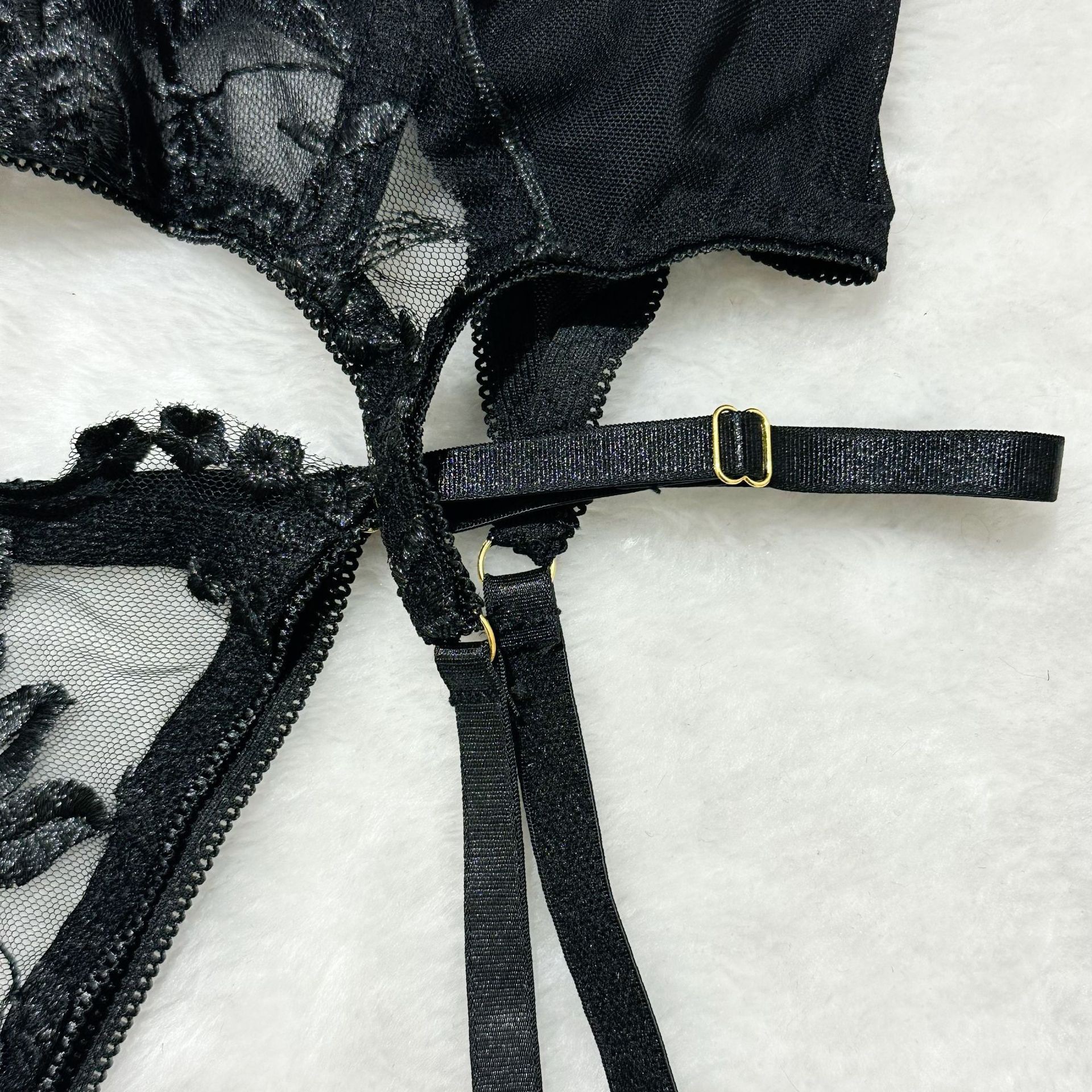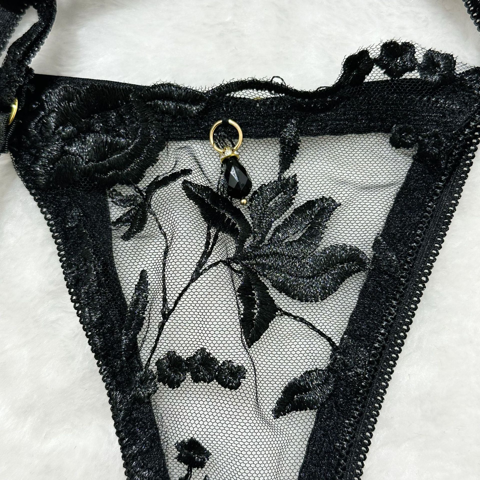 欧美情趣内衣跨境爆款性感诱惑透视网纱重工刺绣三件套文胸套装女