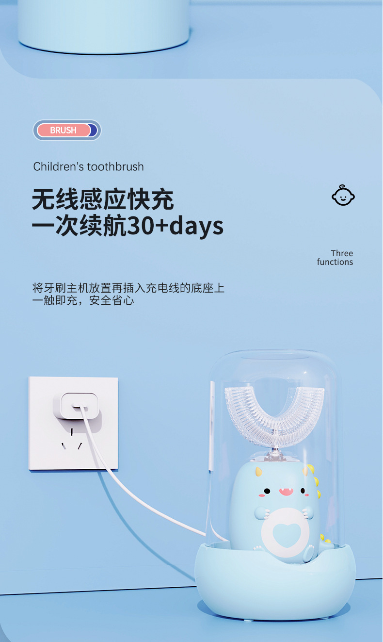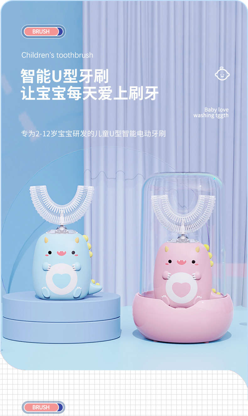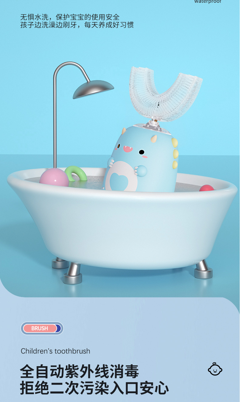 硅胶萌儿童电动牙刷U型2-6-12岁宝宝刷牙神器让宝宝爱上培养刷牙