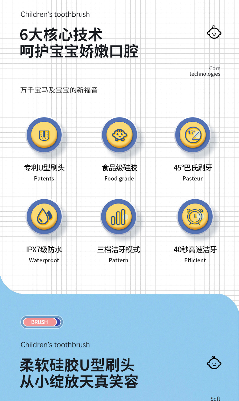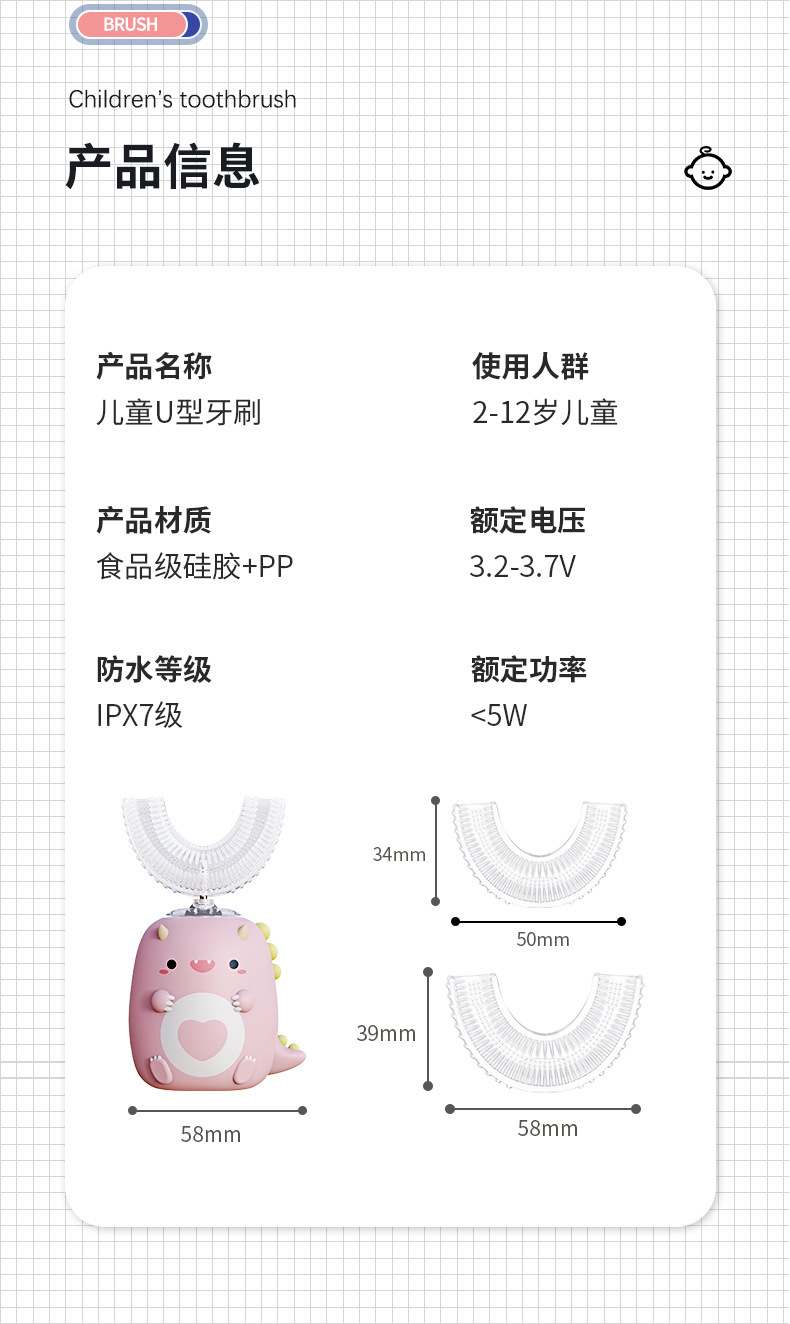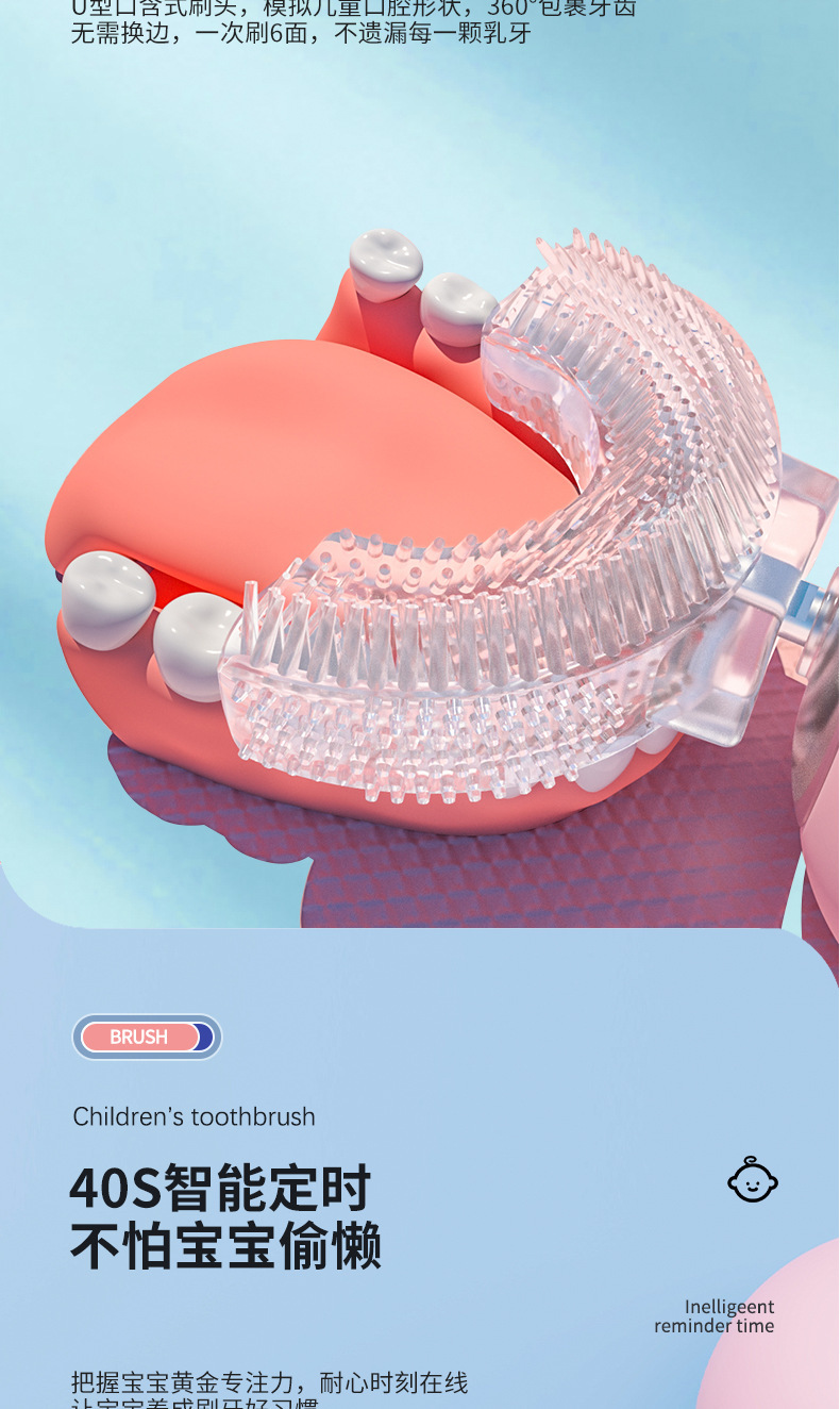 硅胶萌儿童电动牙刷U型2-6-12岁宝宝刷牙神器让宝宝爱上培养刷牙