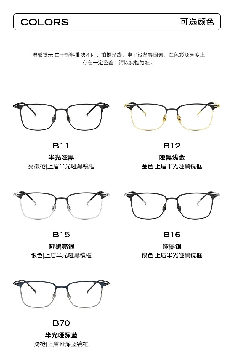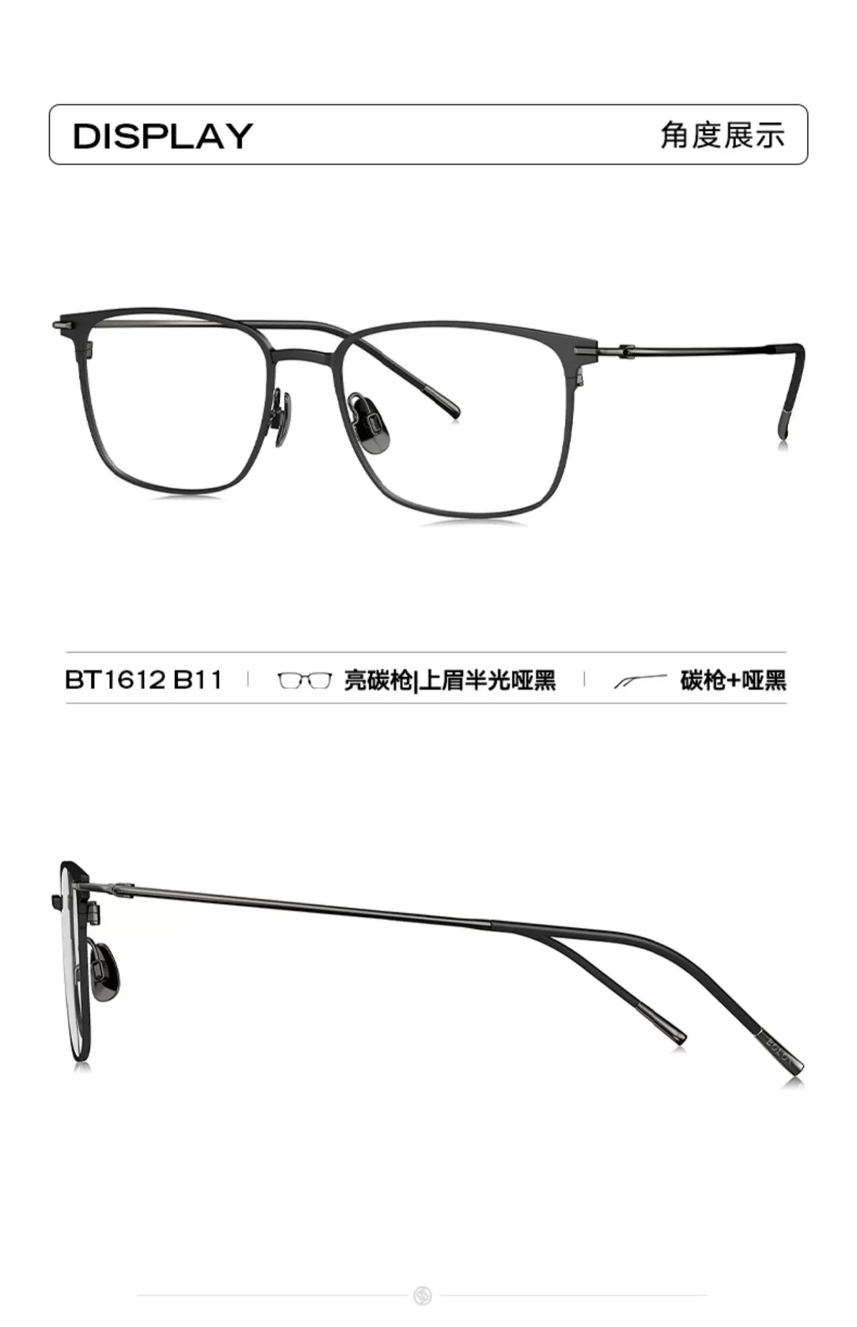 BOLONG暴龙眼镜/BT1612 商务近视镜架钛方型眉框金丝男镜框