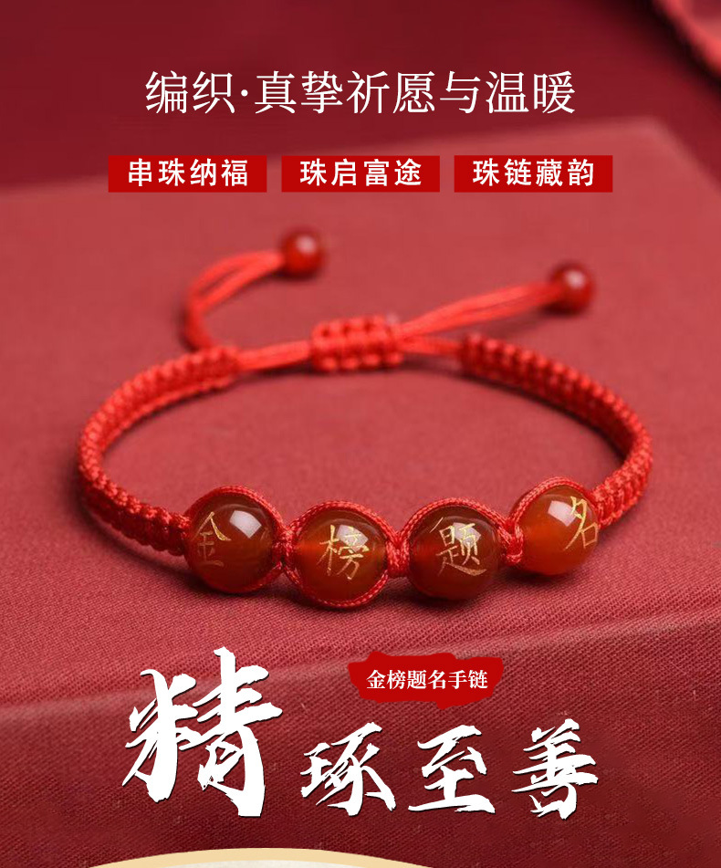 金榜题名玛瑙手串红手绳男女高考考必过幸运手绳礼品毕业逢考必过