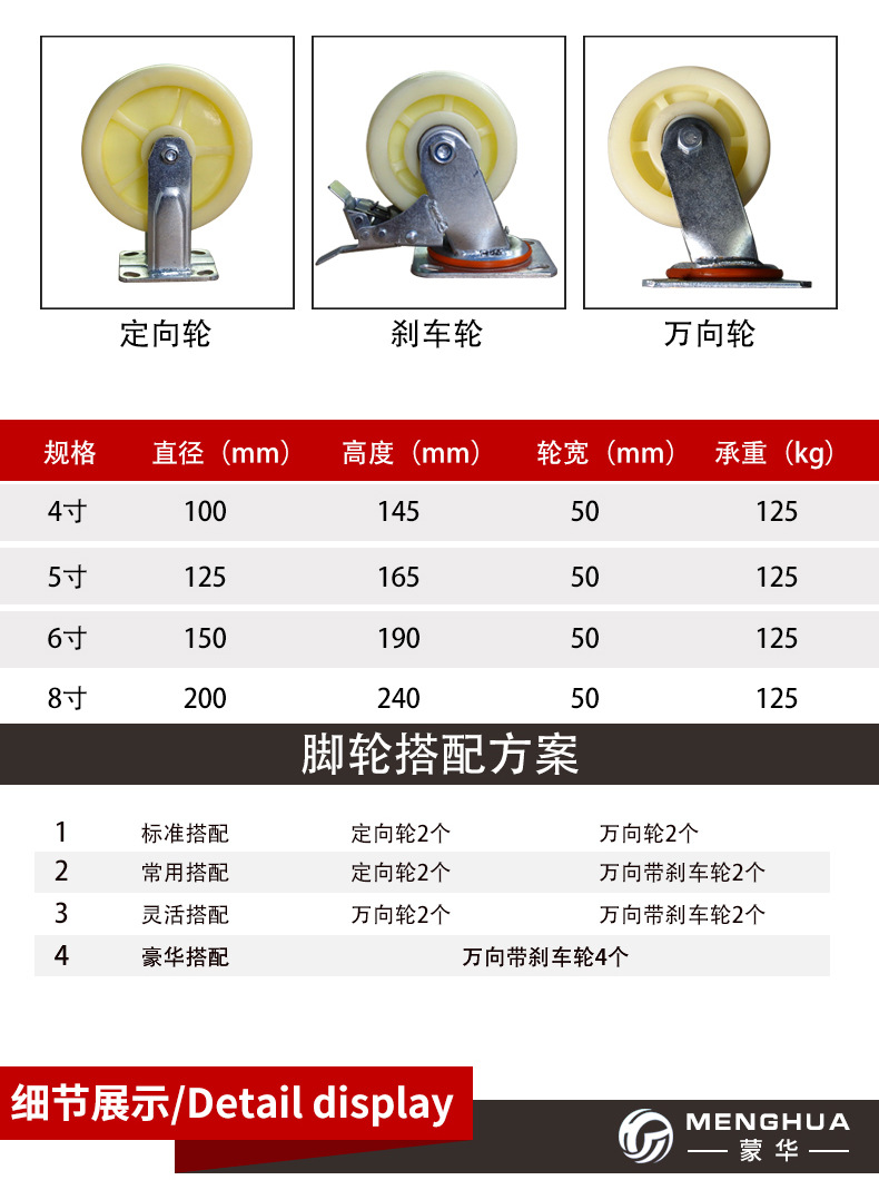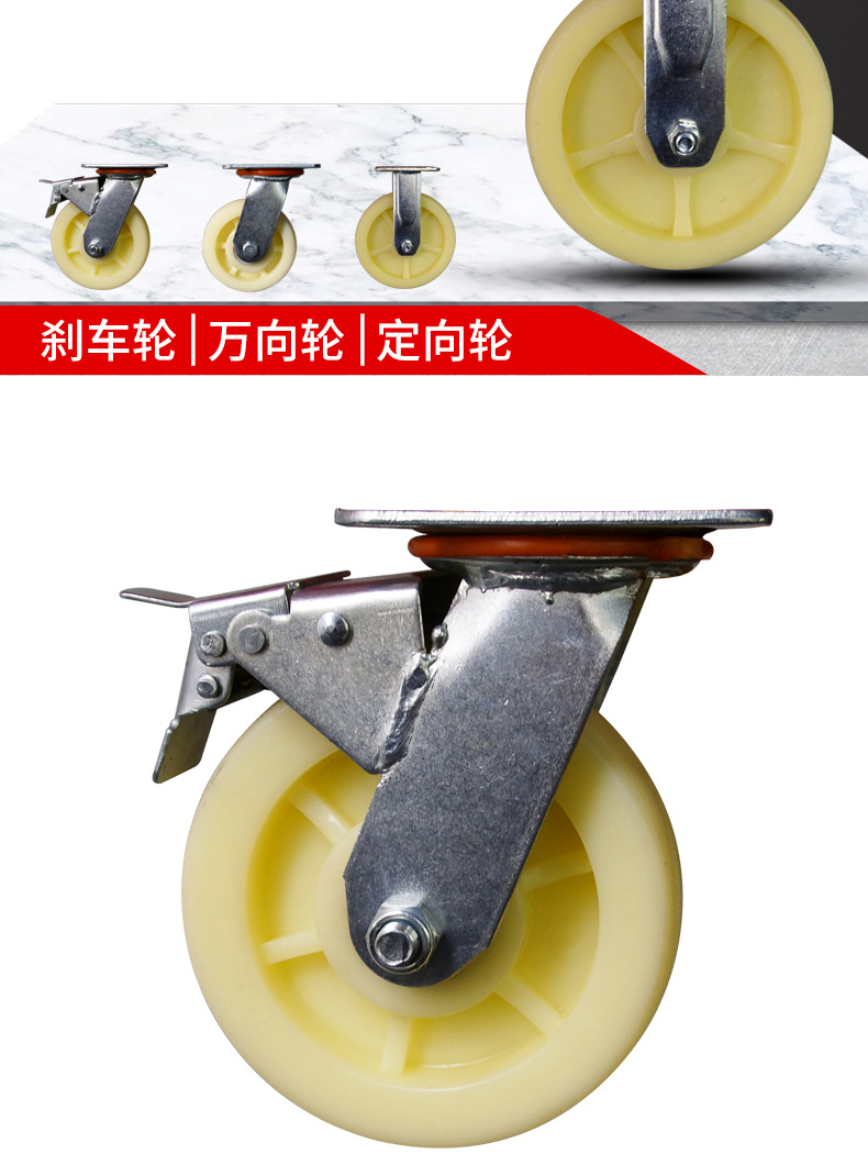 白色尼龙PUTPR系列运用物流设备手推车工业万向脚轮重型焊接支架