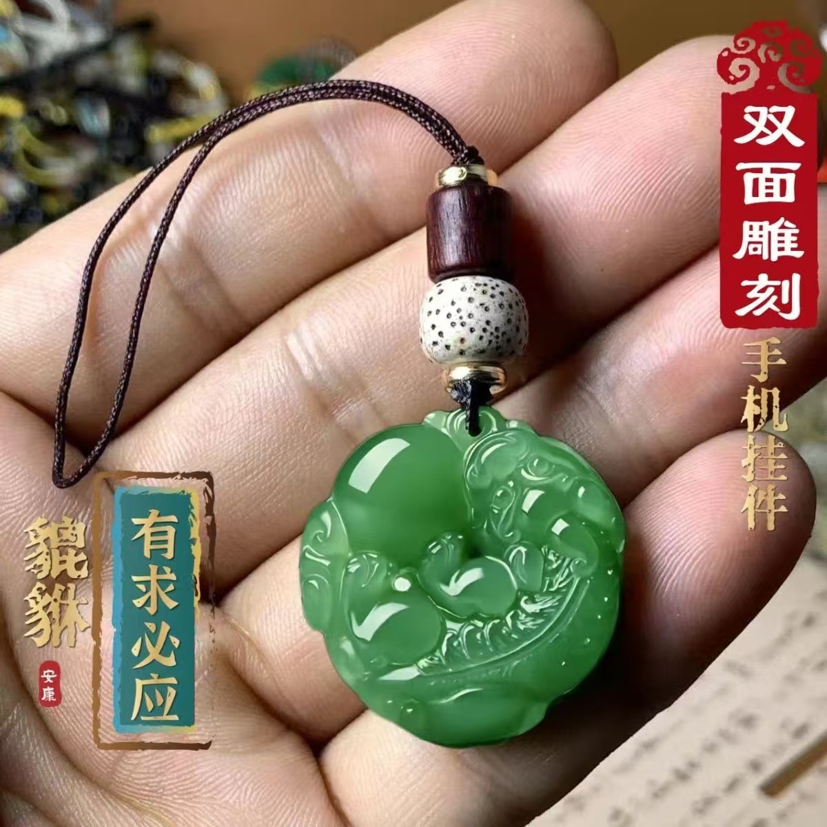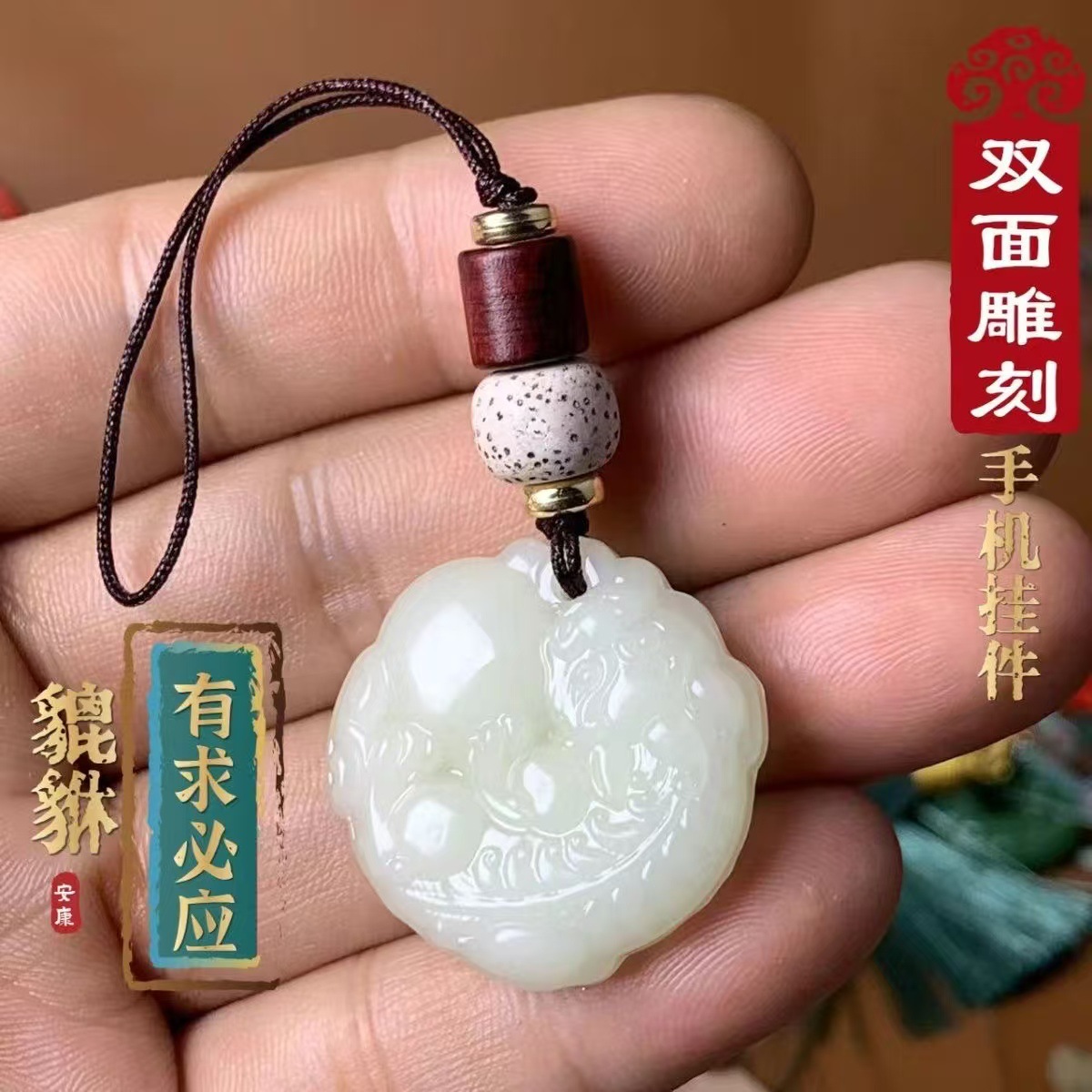 有求必应双面貔貅古风手机链挂绳吊坠包包挂饰钥匙挂件手工情侣款