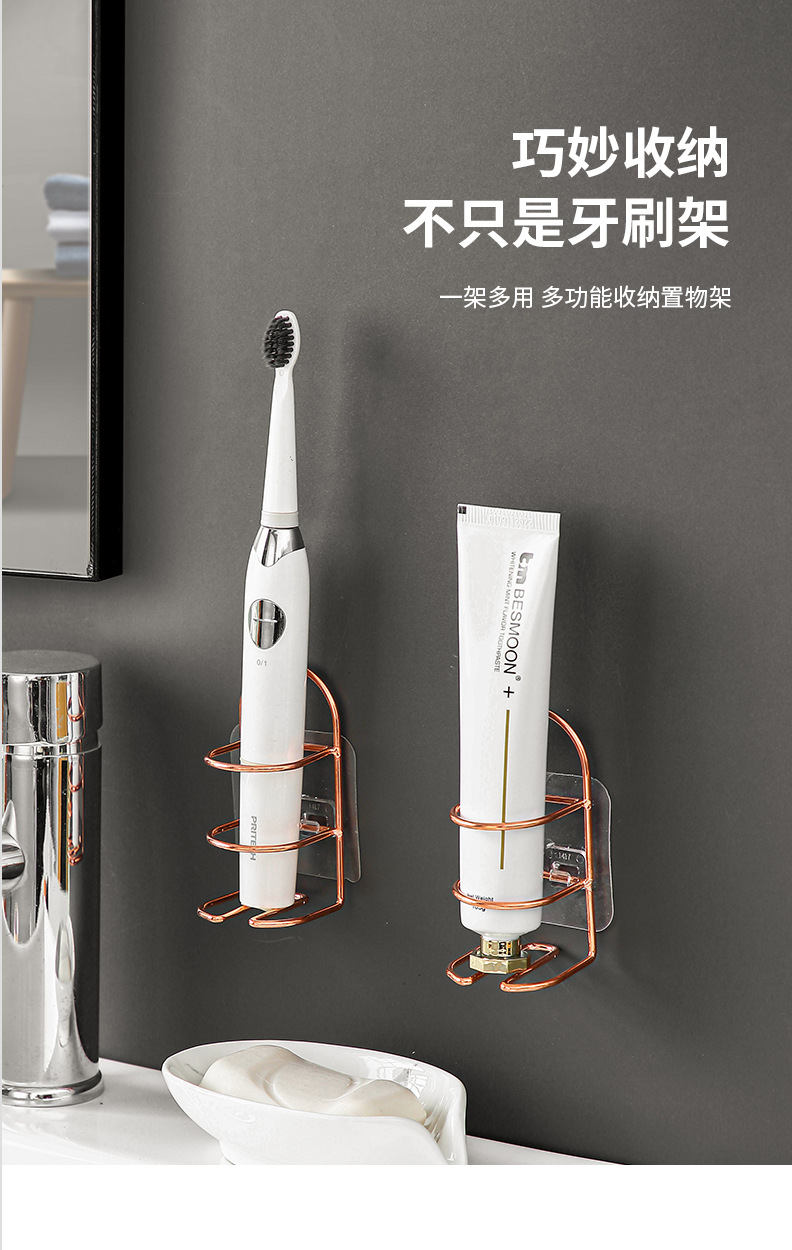铁艺电动壁挂免打孔牙刷架挂墙式挂架吸壁式置物架卫生间牙具收纳批发定制源头工厂