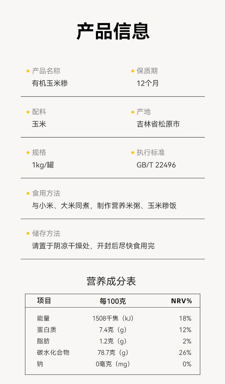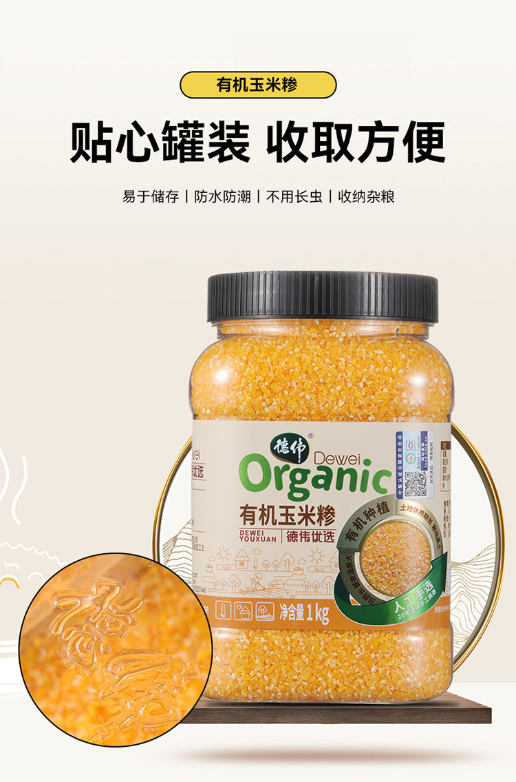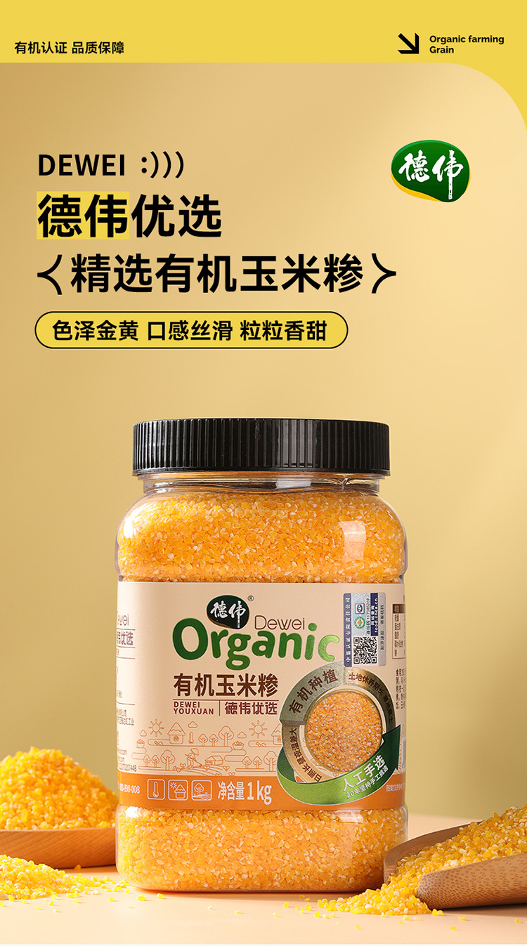 德伟有机玉米糁1kg东北新米玉米渣子农家自产熬粥煮饭玉米碎苞米