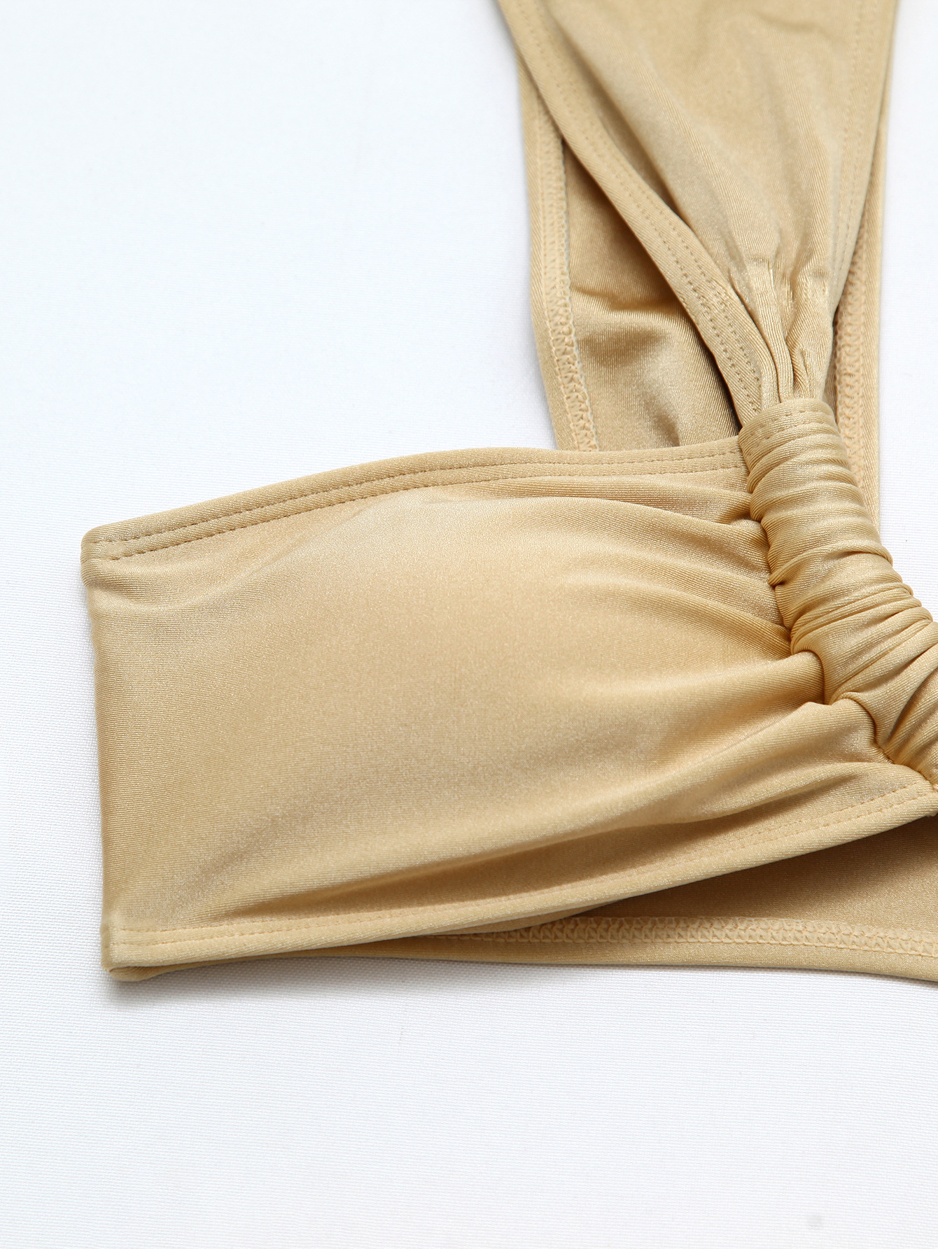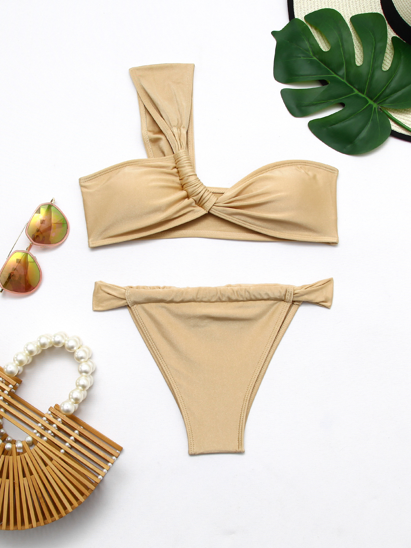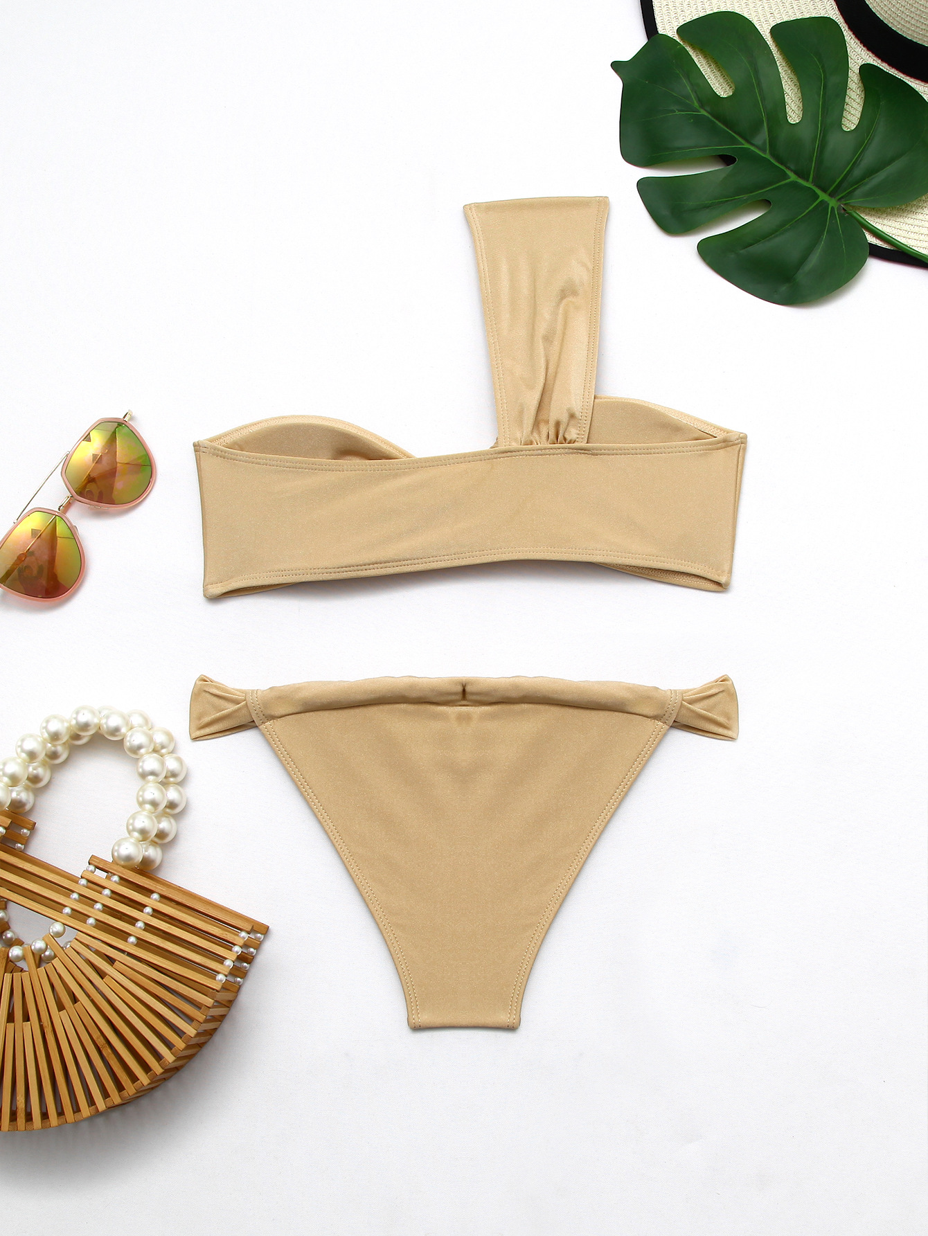 热销外贸分体泳衣女高级单肩纯色性感比基尼纯欲单肩沙滩度假泳装