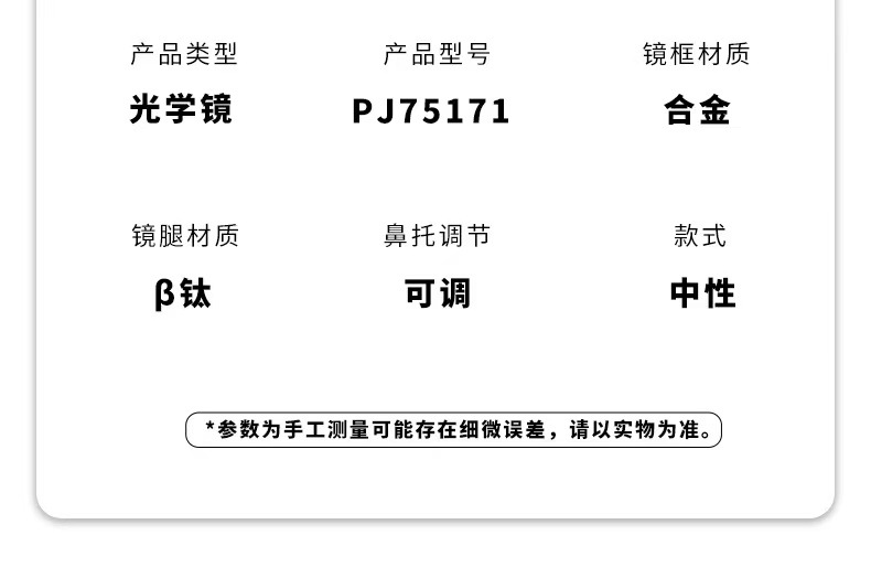 帕-莎PJ75171 25年新品杨超越同款文艺简约金丝轻盈钛眼镜架
