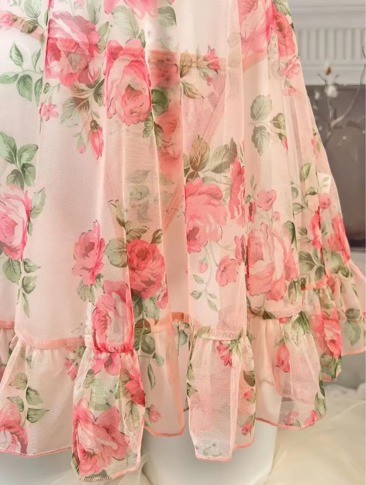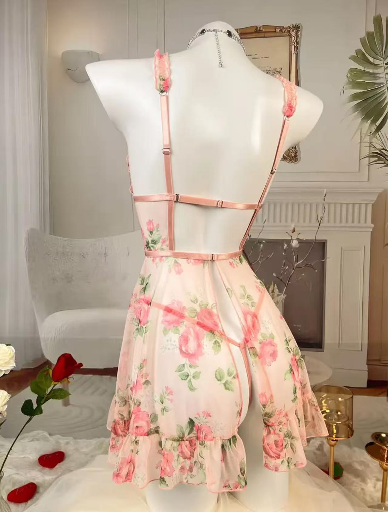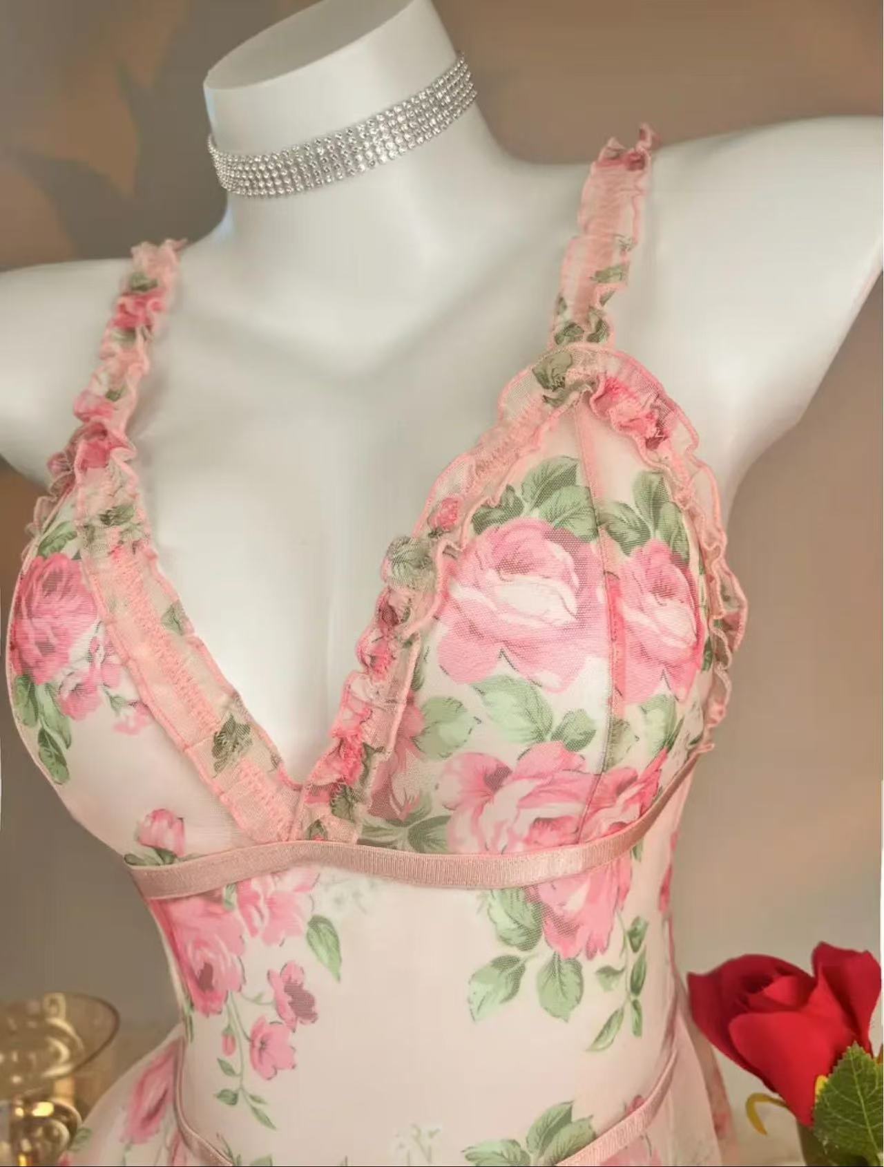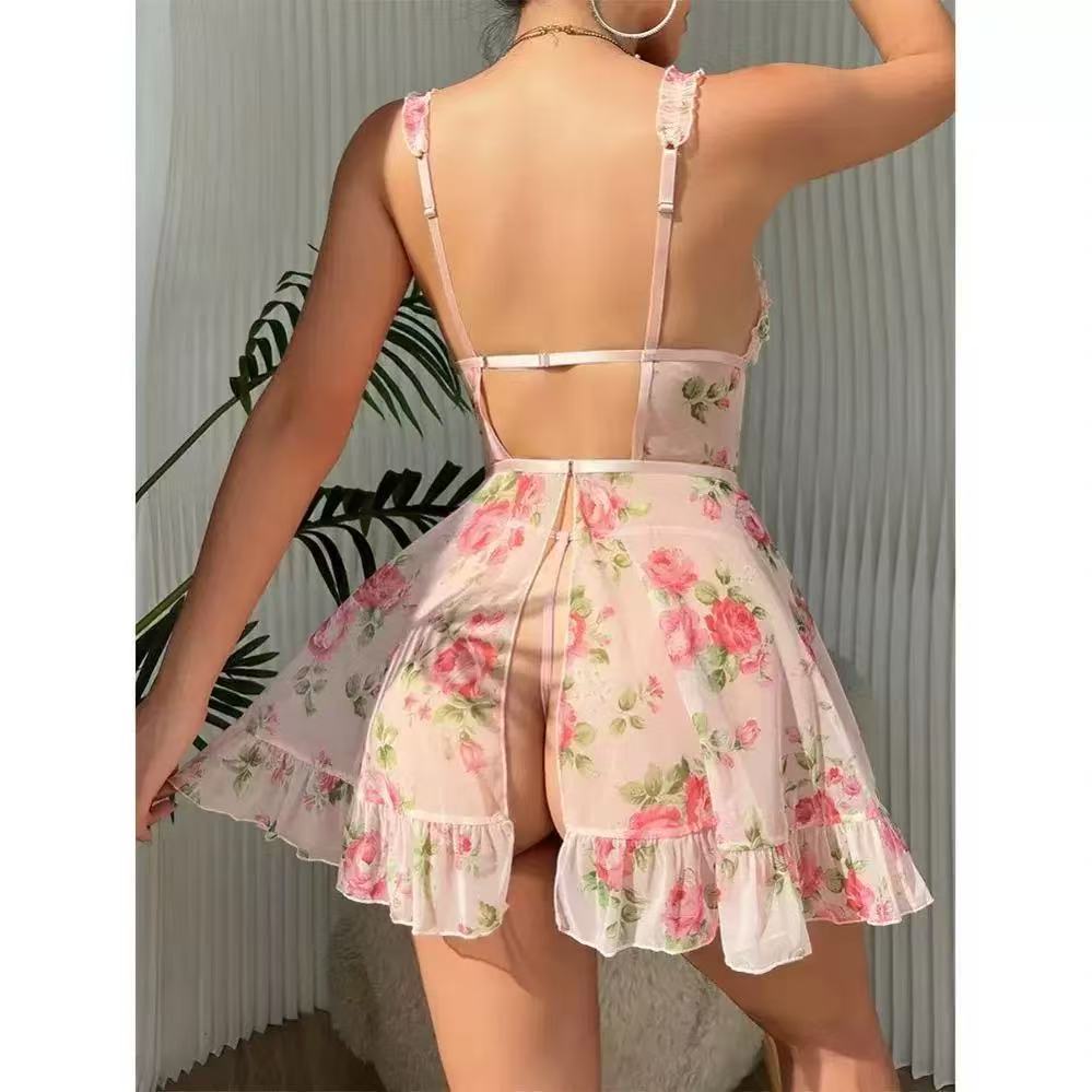 跨境性感网纱印花连衣裙欧美亚马逊情趣睡衣速卖通印花诱惑吊带裙