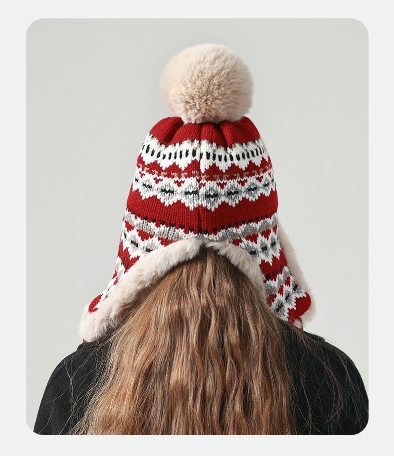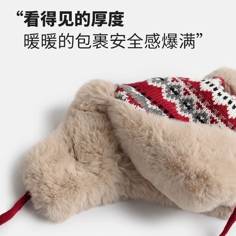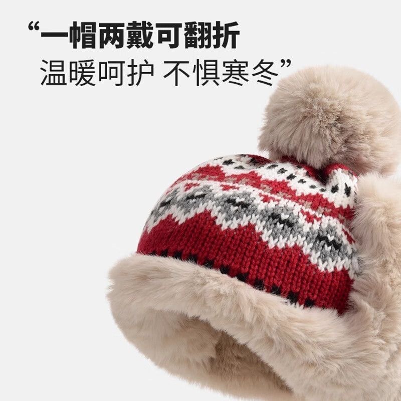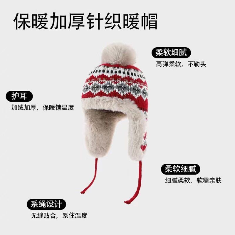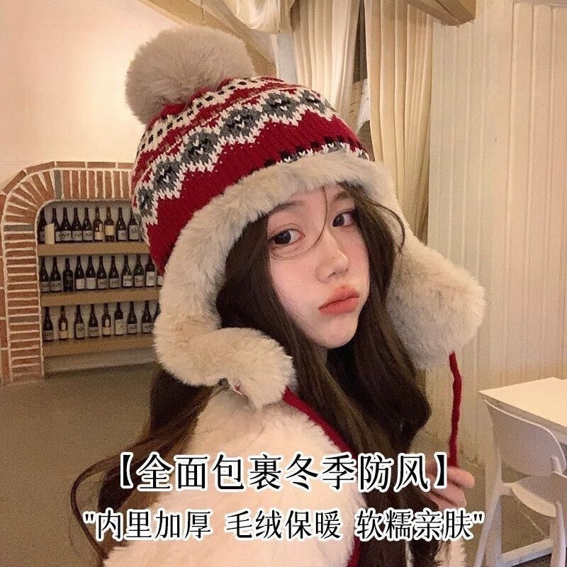 冬季新款加绒保暖雷锋帽户外防寒护耳毛线针织帽子女甜美可爱休闲