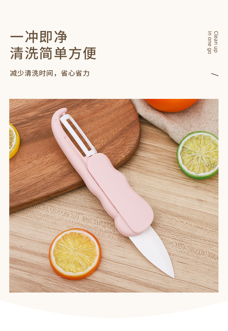 新款陶瓷水果刀多功能削皮二合一 厨房家用可折叠便携锋利厨具