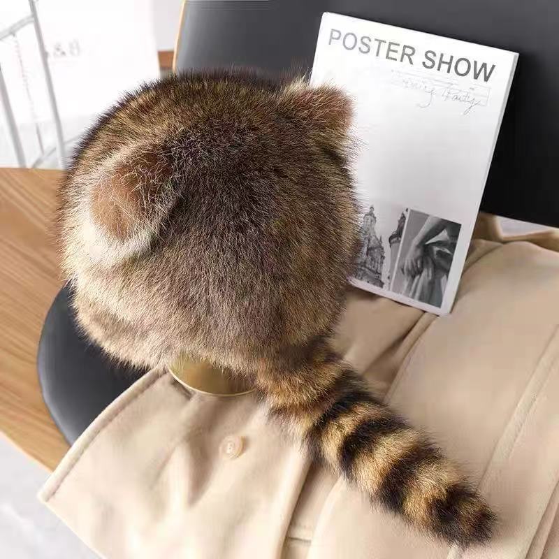 跨境小浣熊护耳帽仿美洲貉毛雷锋霸王帽冬季保暖亲子帽爆款