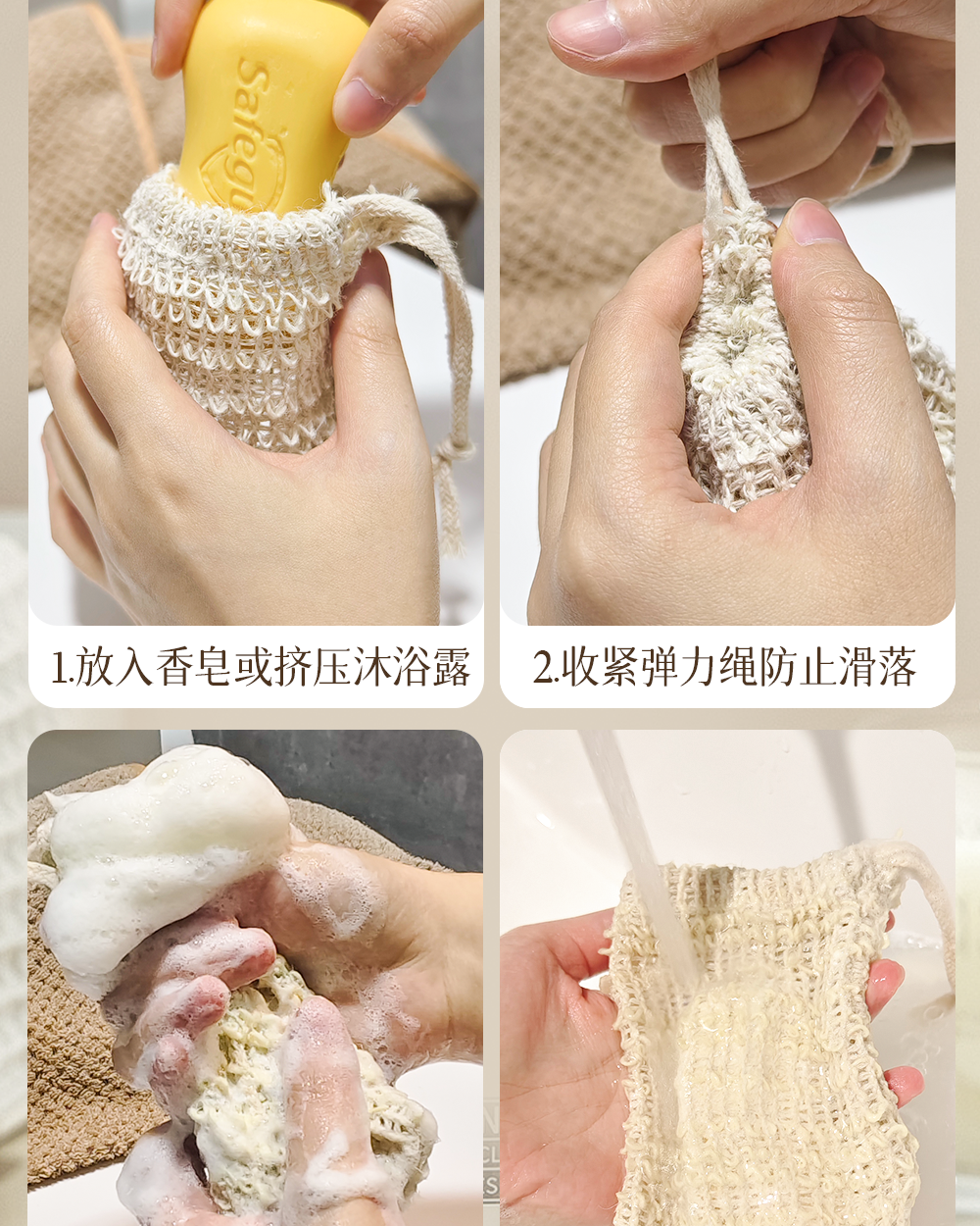 香皂起泡网苎麻肥皂袋洗面奶沐浴露洁面香皂发泡网可挂式肥皂袋