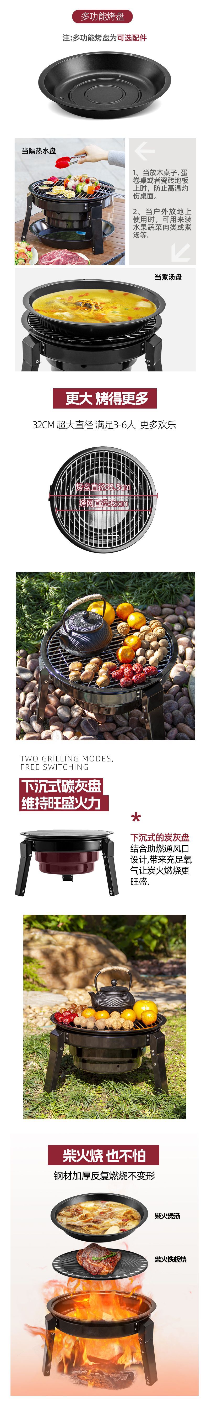 便携户外围炉煮茶烧烤炉烧烤架套装家庭版家用可调节高度烤肉炉子