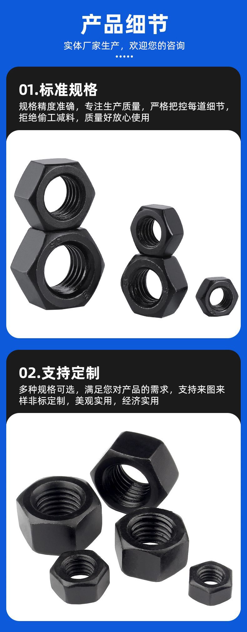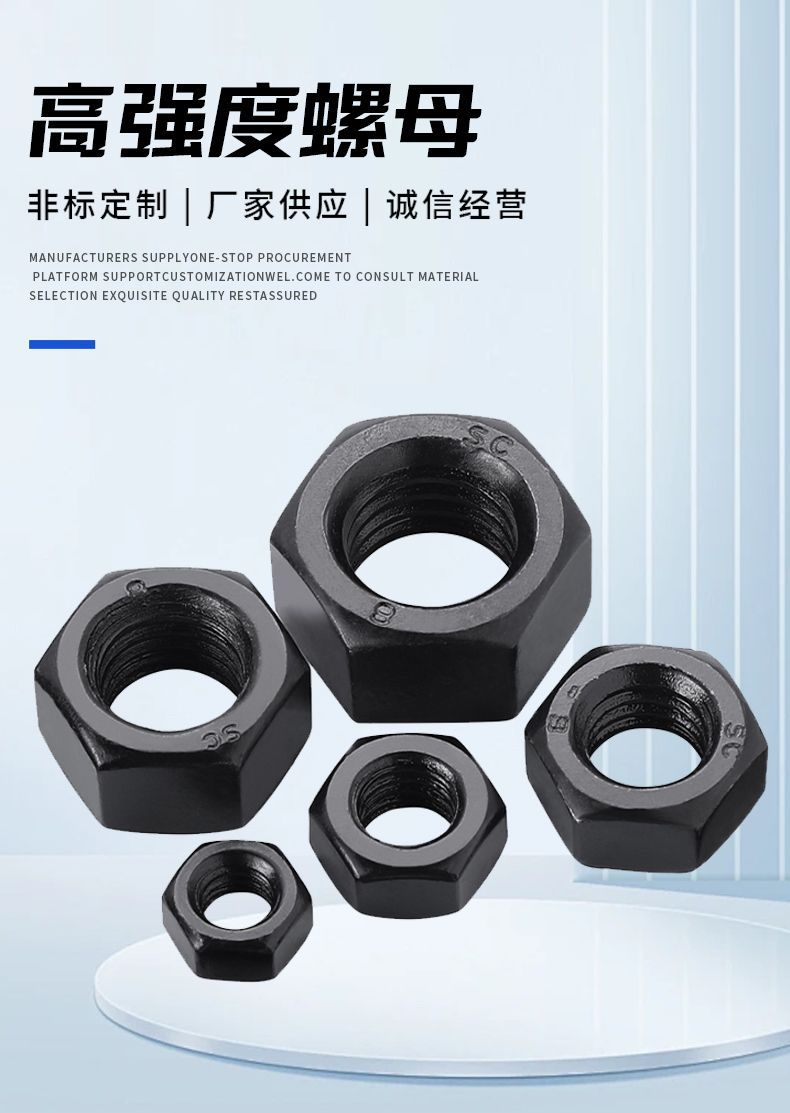 现货高强度螺母氧化发黑外六角螺母加厚螺丝黑色碳钢 8级10级12级