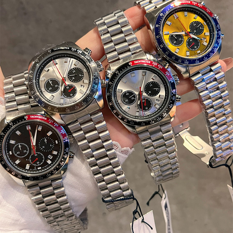速卖通外贸精工牌六针熊猫眼商务夜光日历男士石英手表厂家批发