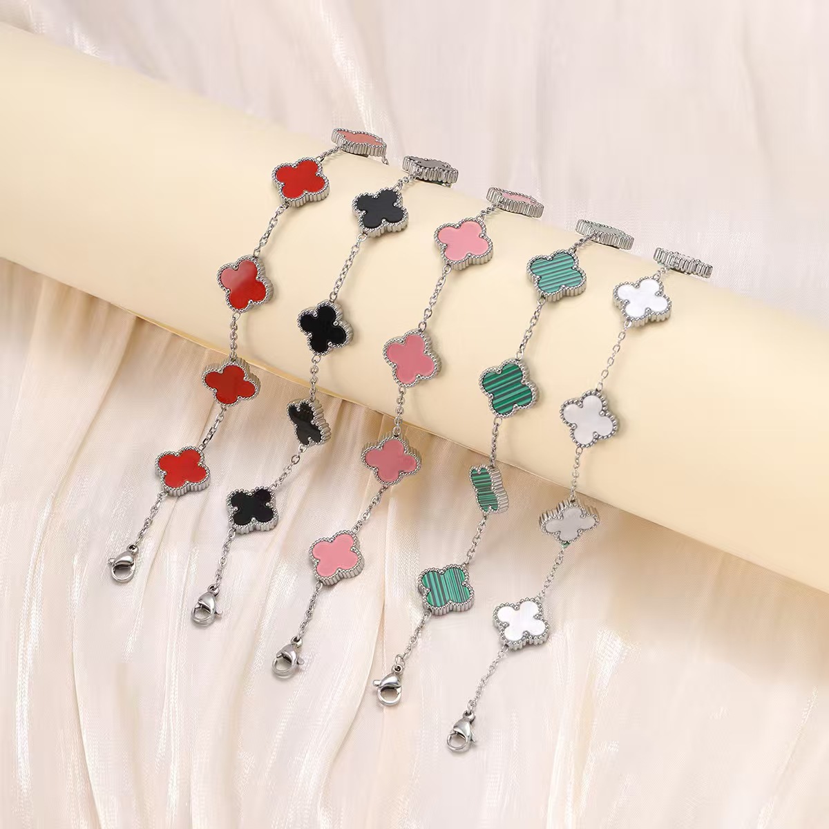 手链女小众设计气质四叶草贝母手串五花银手链不掉色百搭爆款
